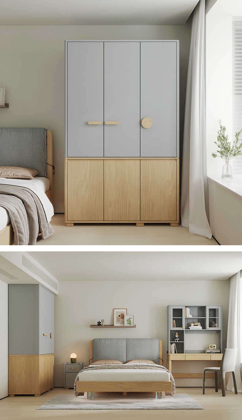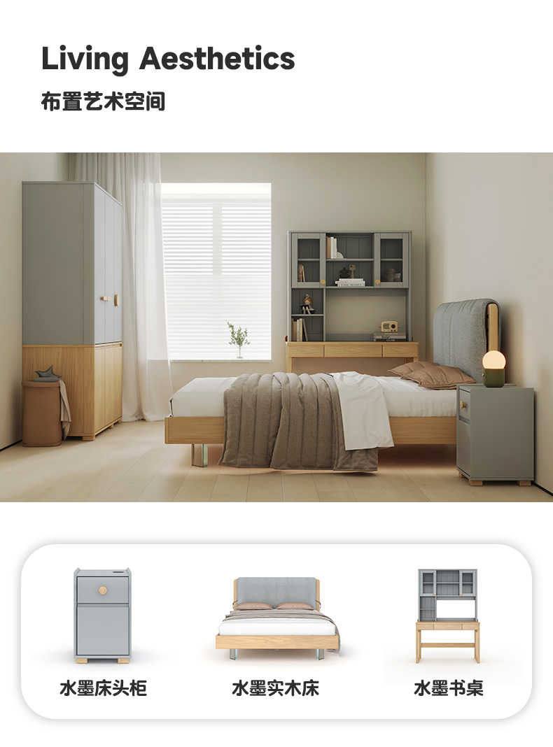 喜梦宝两门三门衣柜现代简约新中式造型卧室家具水墨系列