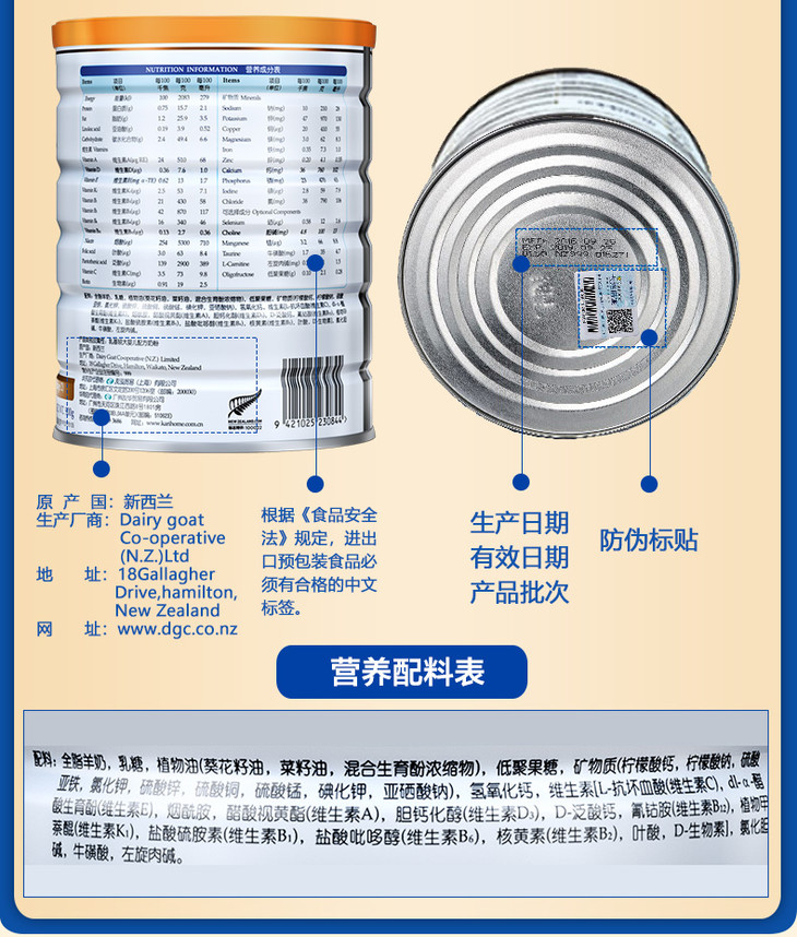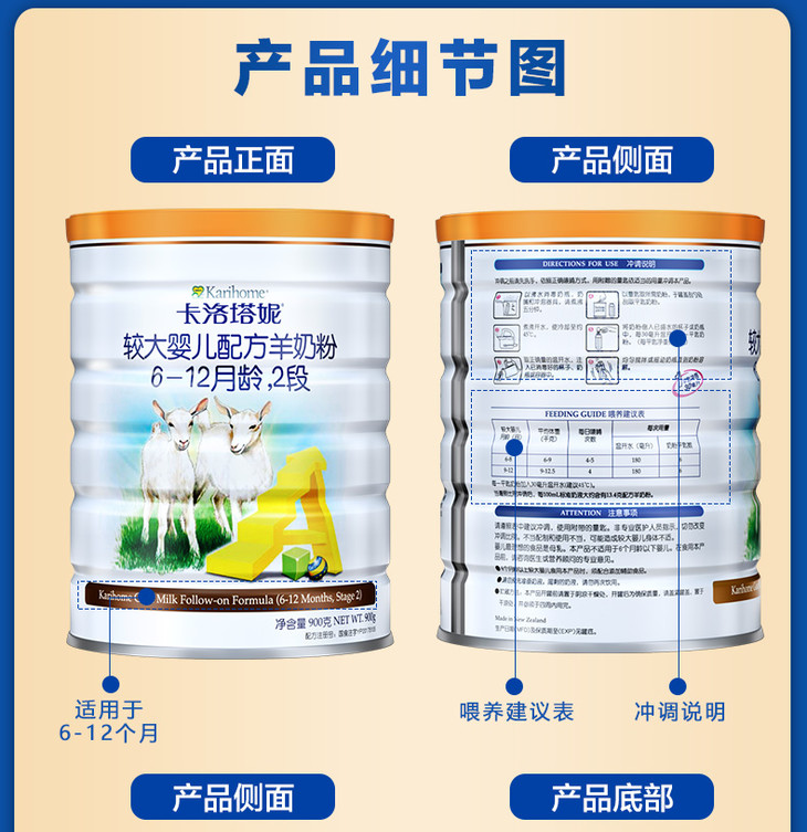 卡洛塔妮较大婴儿配方羊奶粉2段900G