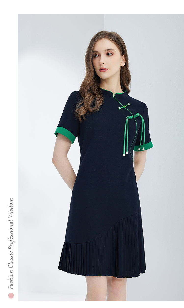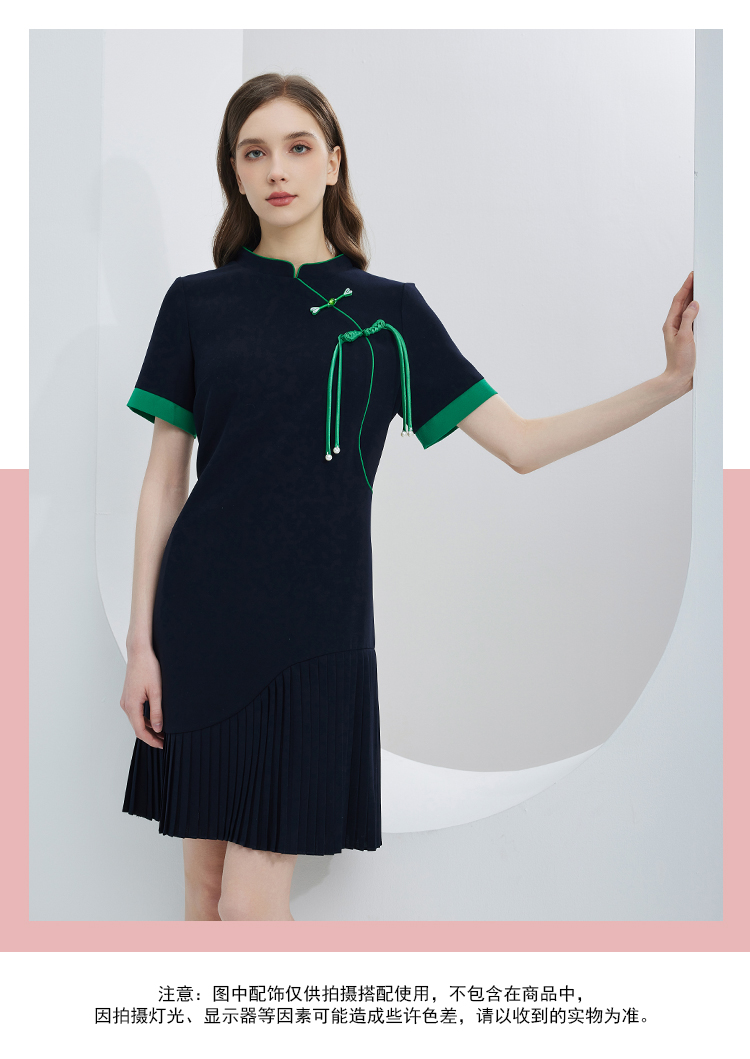 NF8N7斯尔丽瑟俪2023新款新中式旗袍设计流苏盘扣高腰节连衣裙