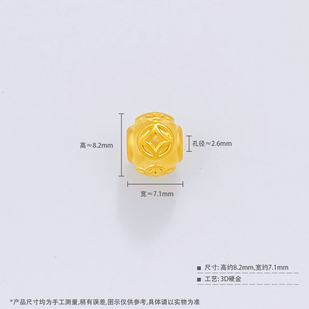 足金 #招财进宝 【精品】3D硬金空心财源滚滚招财铜钱图案金币转运珠手串配件Diy手串配件(AR3DSC00253)(预售产品下单后不退款不退货不换货不补差价