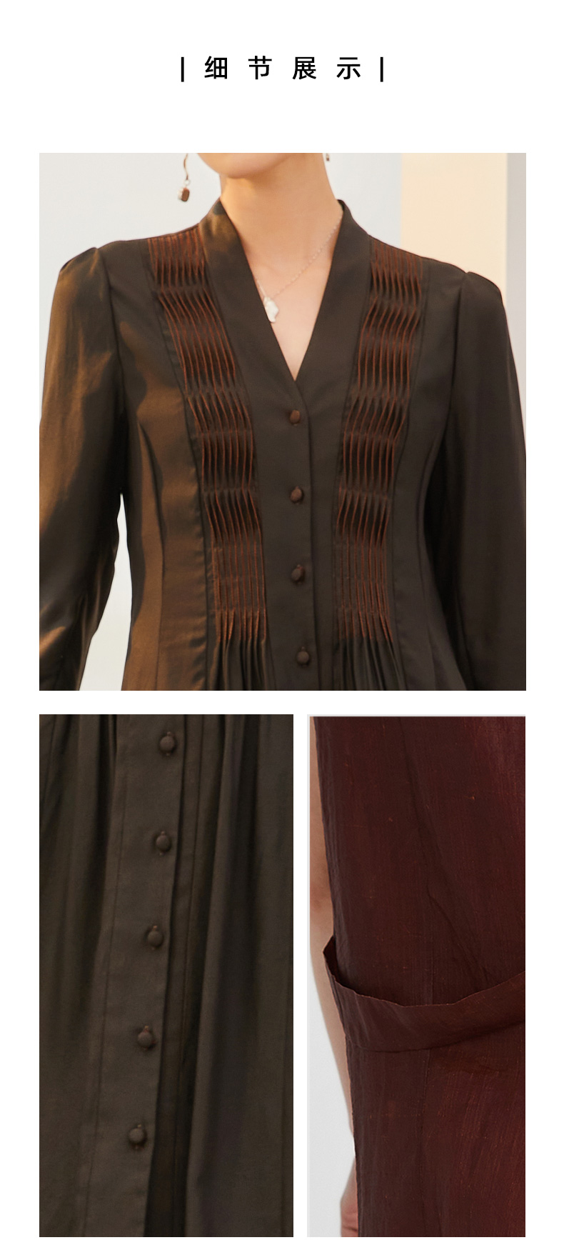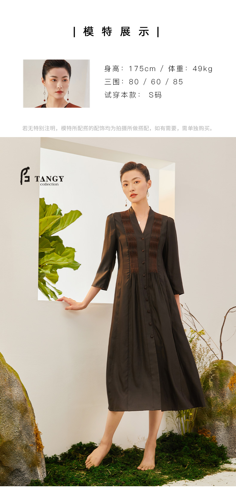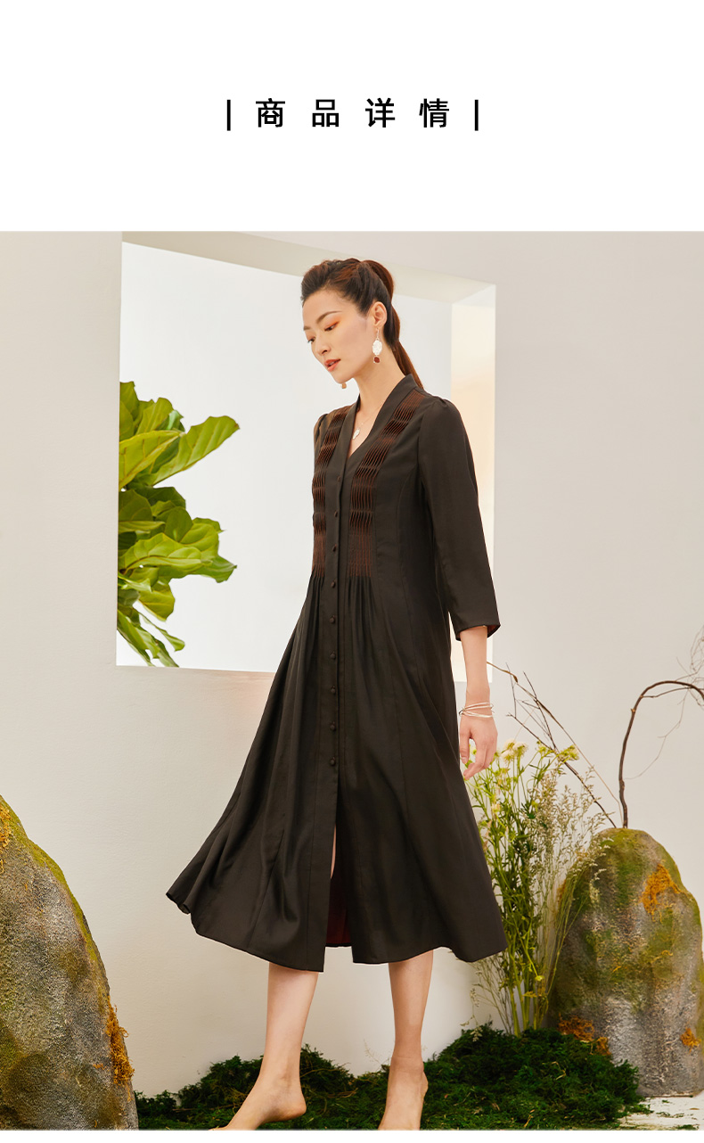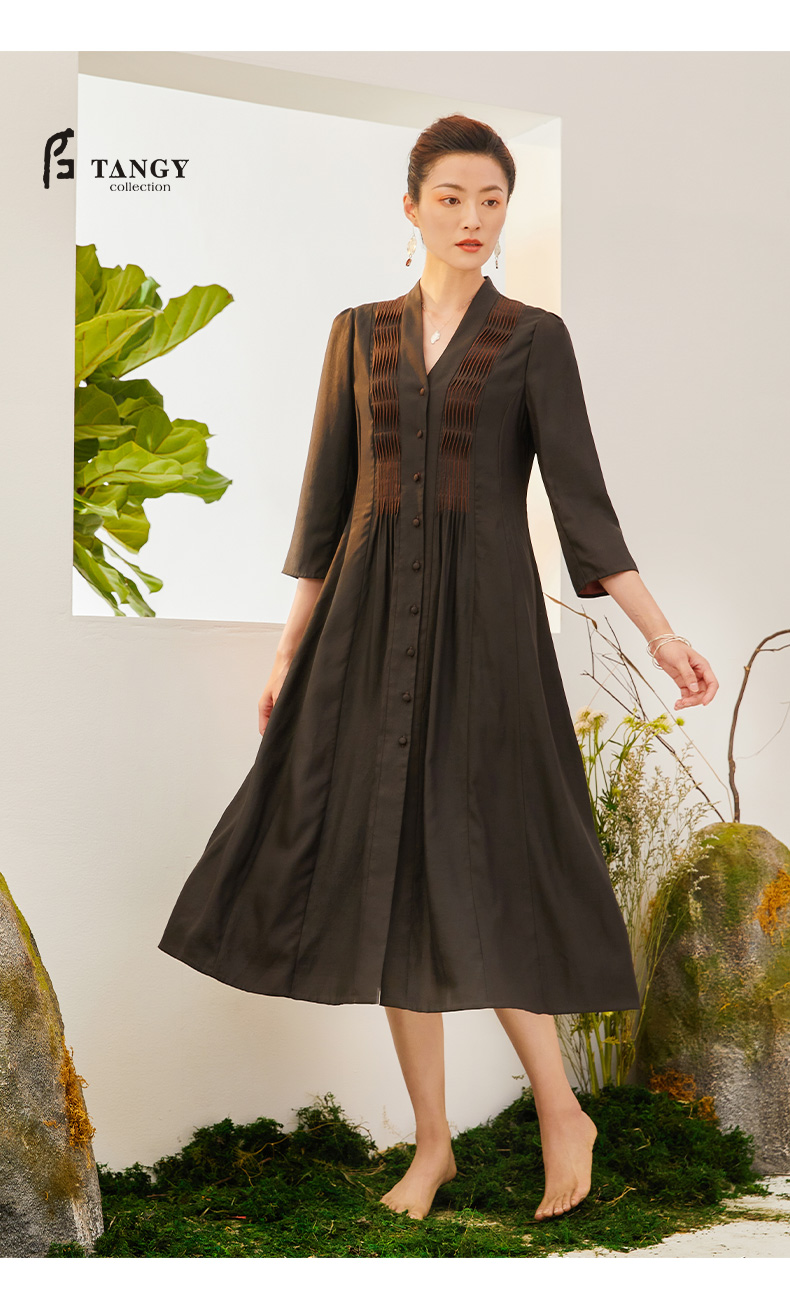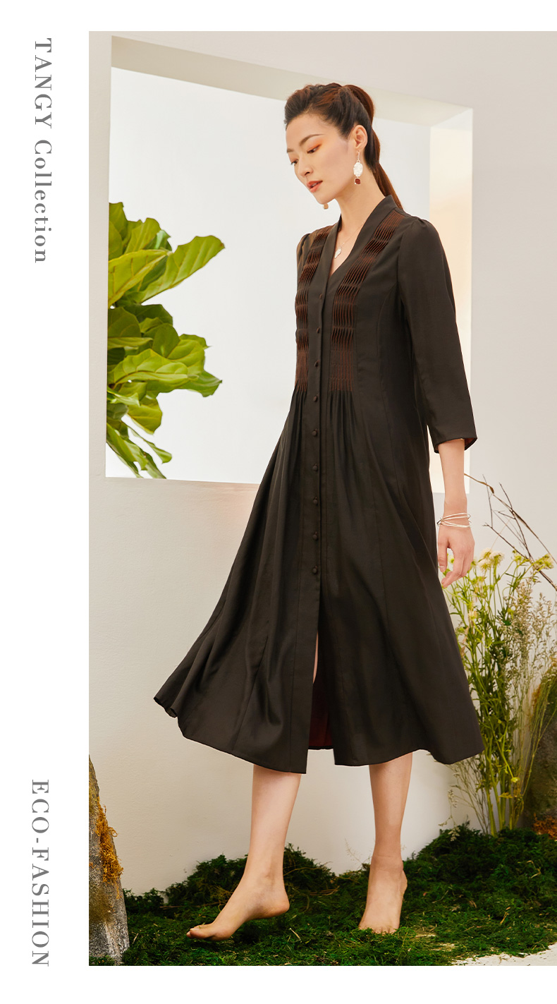 TANGY Collection/天意精品2021年秋季新品原创手工捏褶莨绸连衣裙