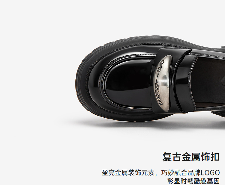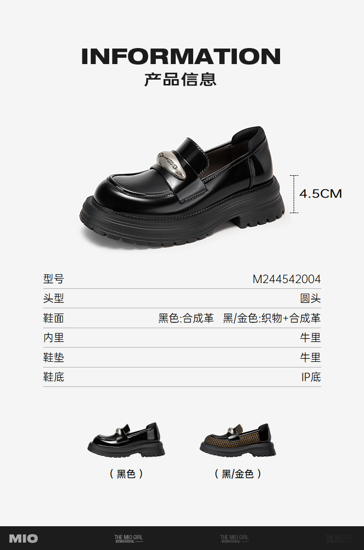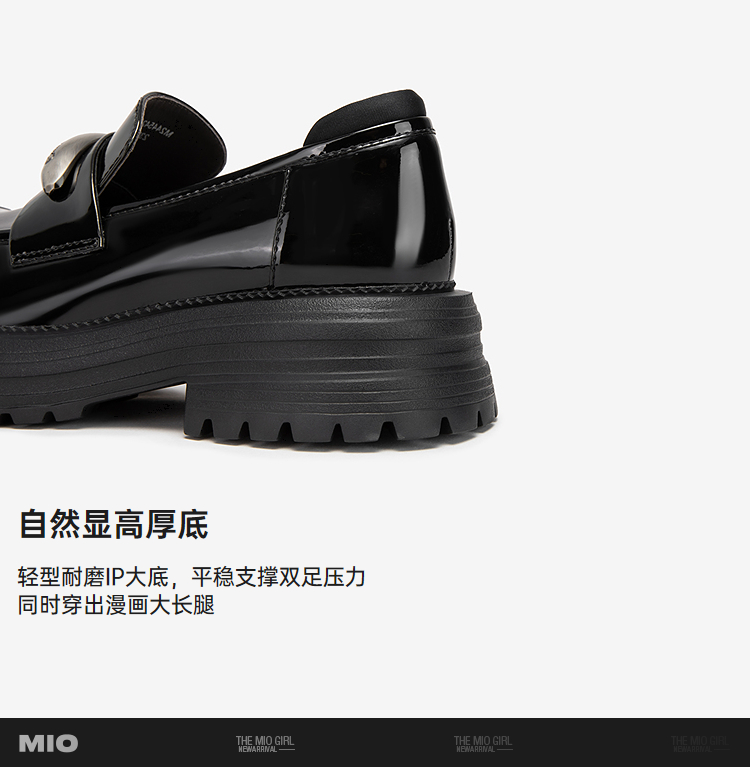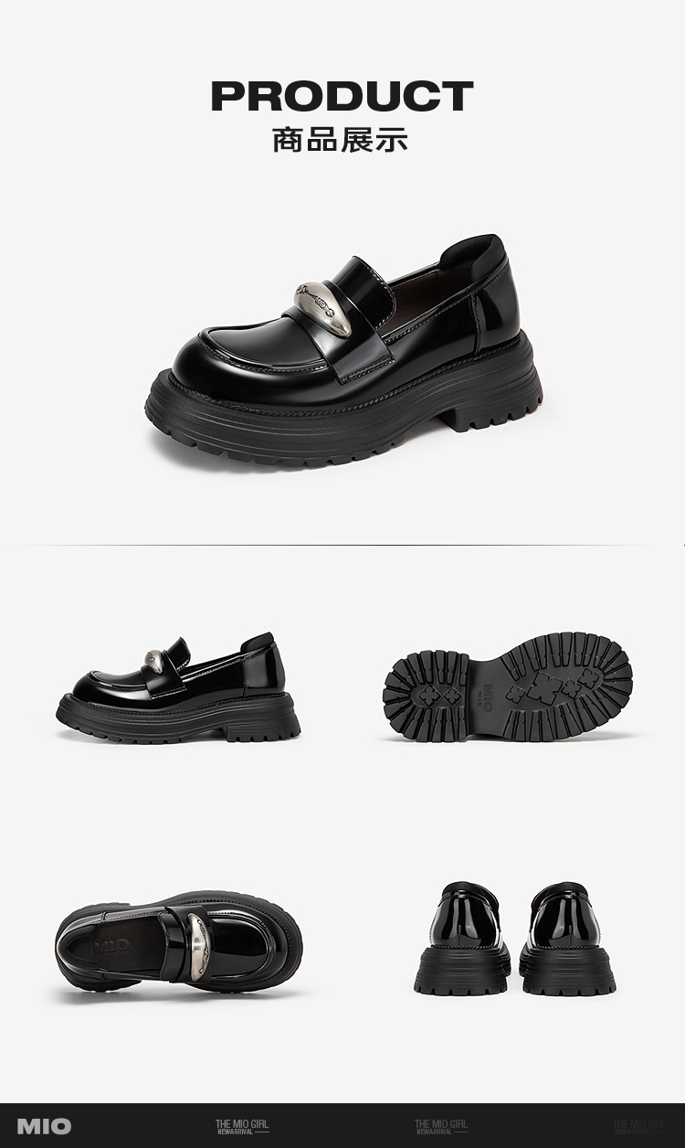 MIO米奥秋季圆头通勤粗跟单鞋复古学院金属饰扣乐福鞋女鞋M244542004