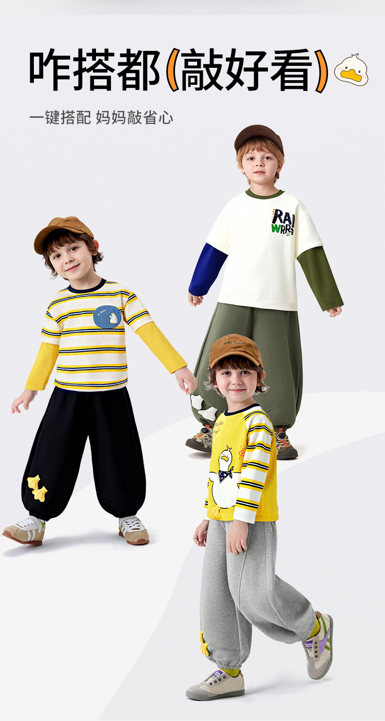 【10A抑菌 100%棉】【90-130】【可可鸭】男童春秋束脚卫裤