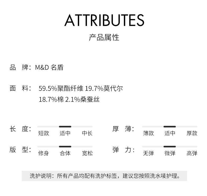 | 品牌: M&D/名盾 | 面料分类: 桑蚕丝 |