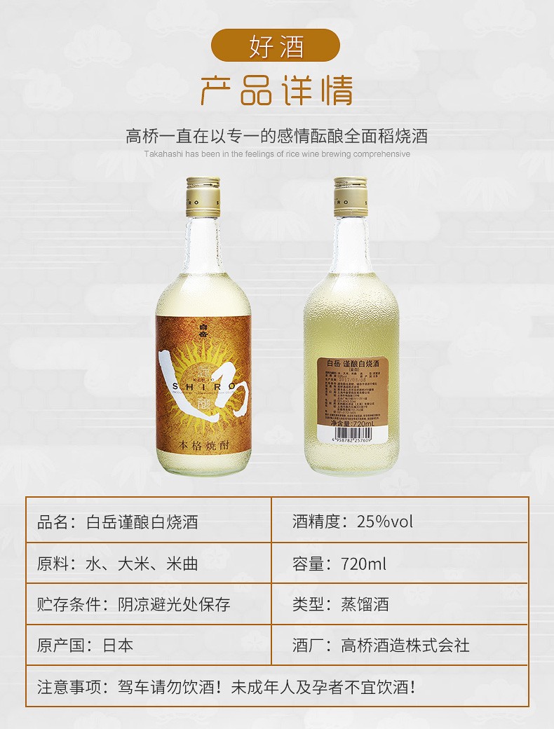 白岳谨酿白烧酒720ml/010025 好“米”出好酒