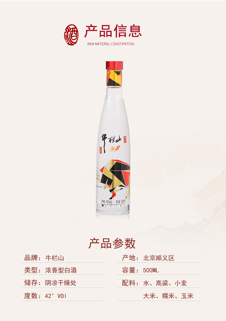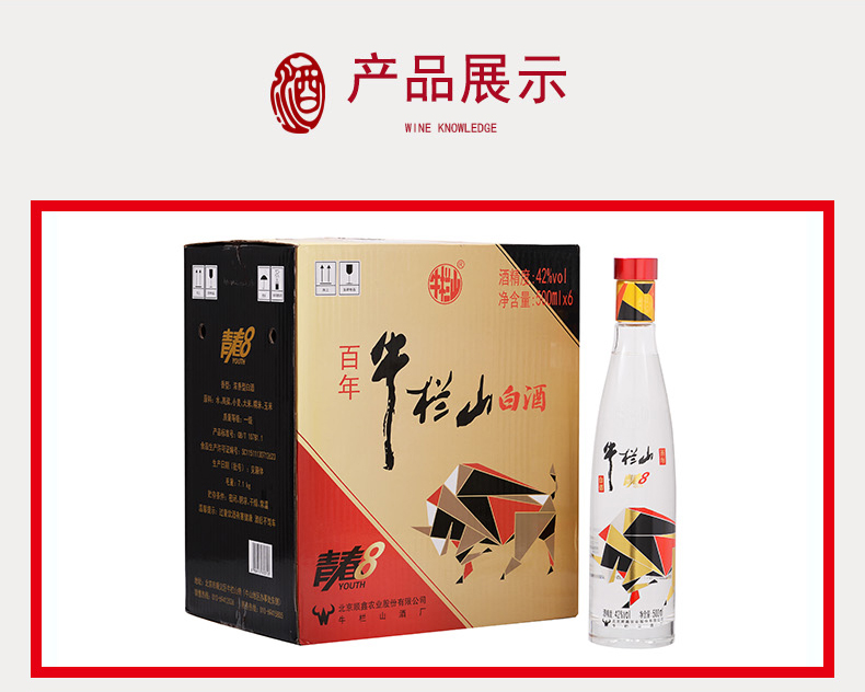 牛栏山白酒 炫彩青春V8 42度500ml*6瓶整箱 浓香型白酒