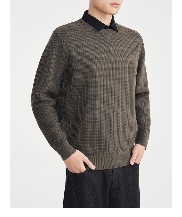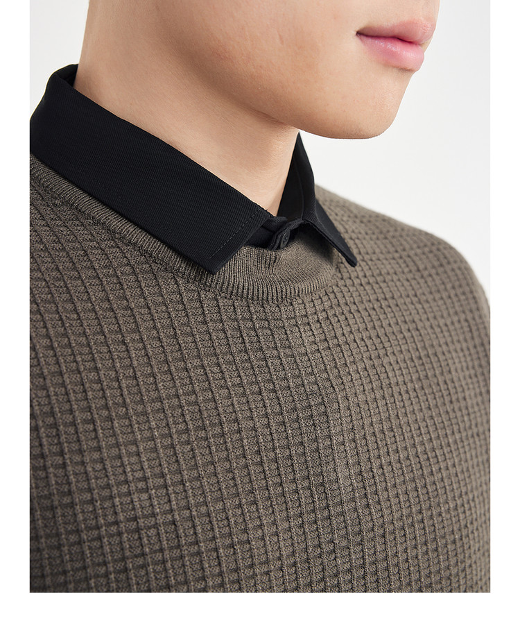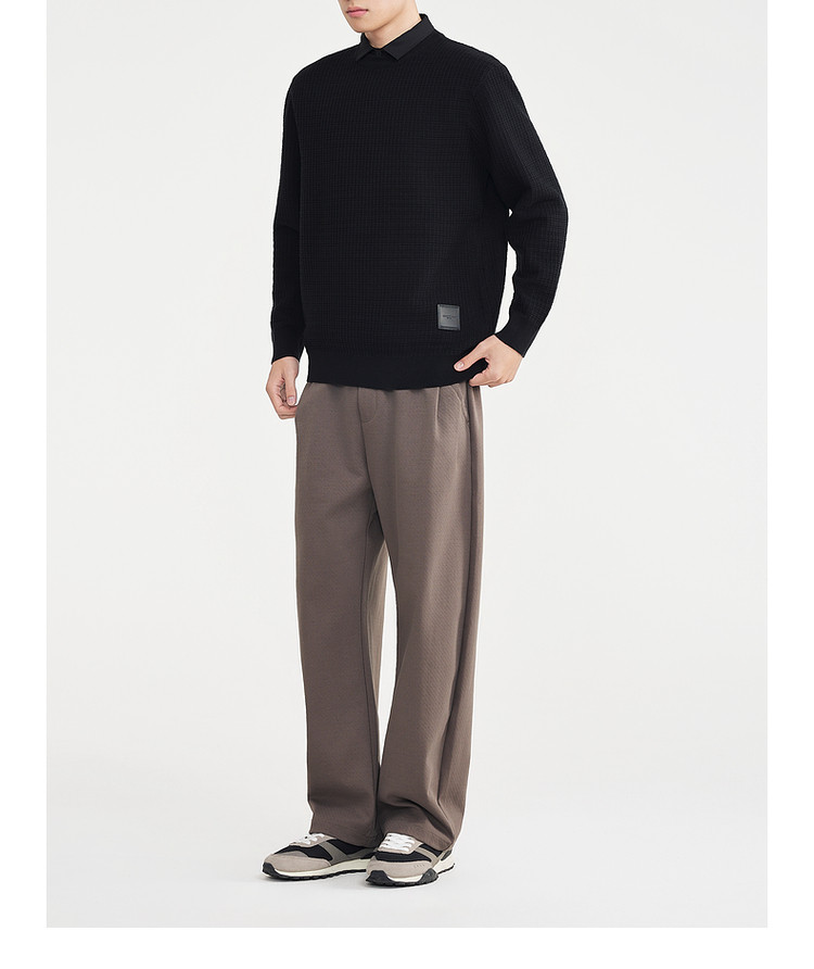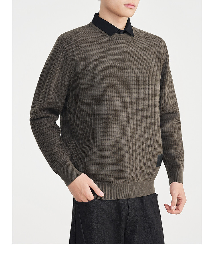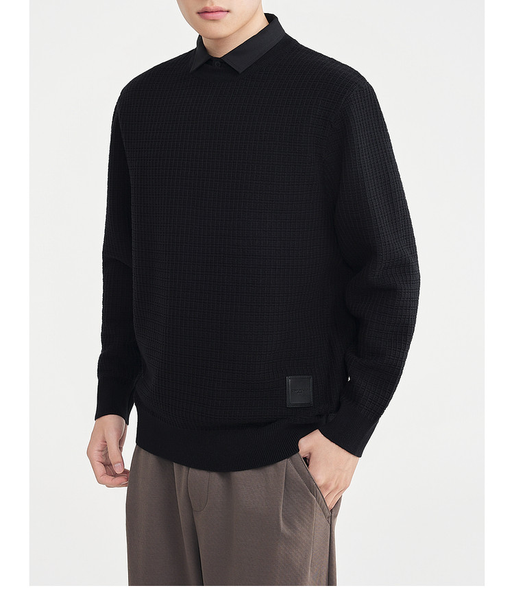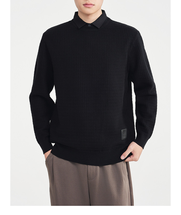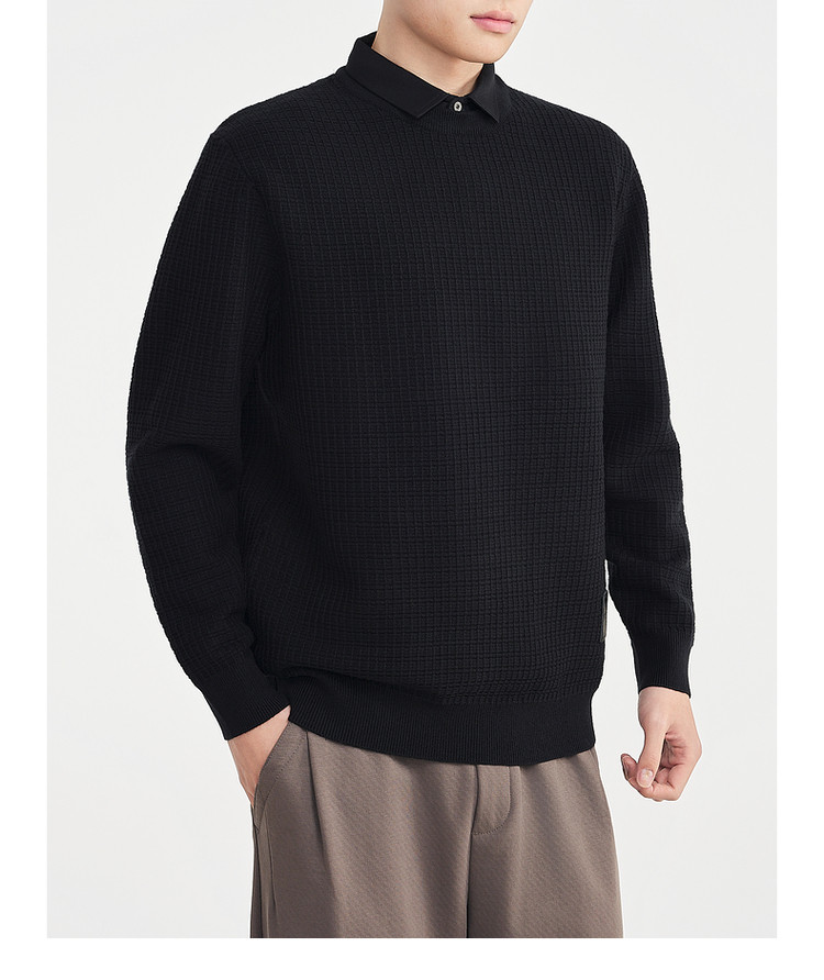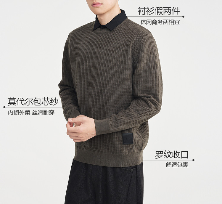 墨麦客男装2025年冬季新款微阔衬衫假两件针织衫男士套头毛衣男潮
