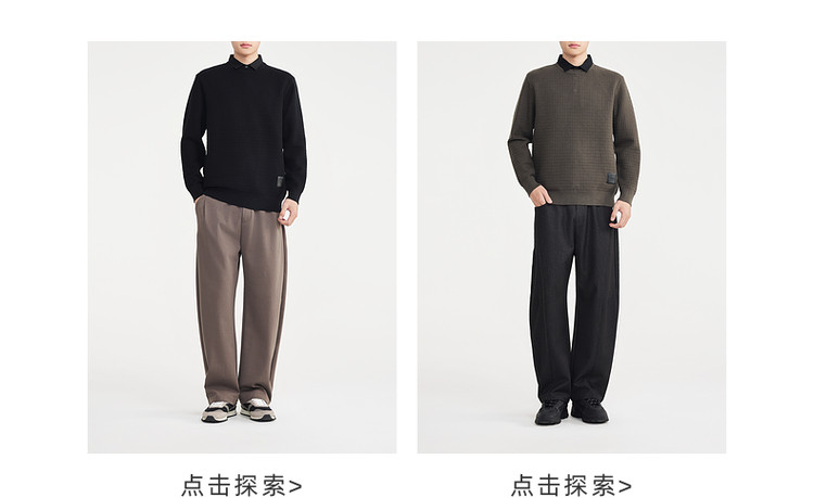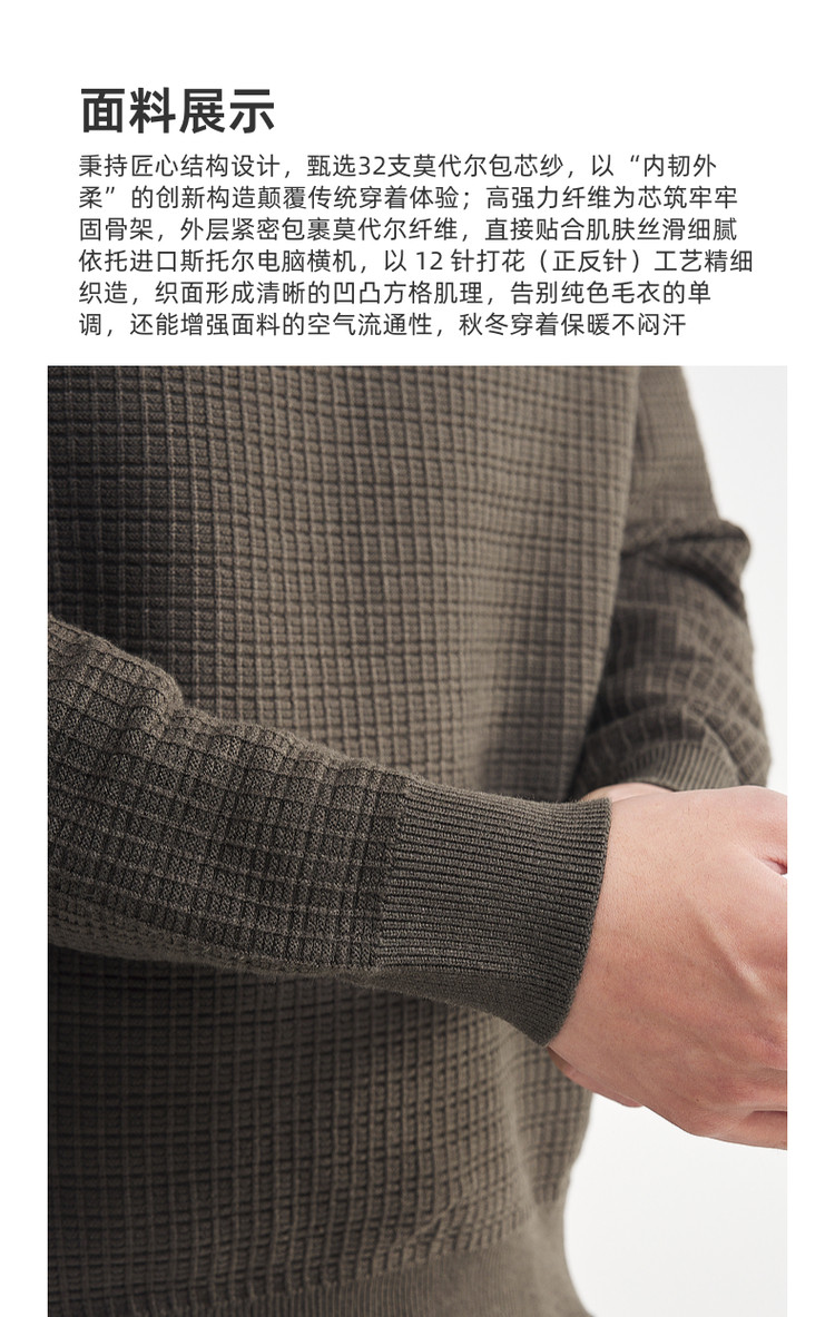 墨麦客男装同色肌理拼接男士休闲圆领卫衣2024秋季新款重磅上衣。