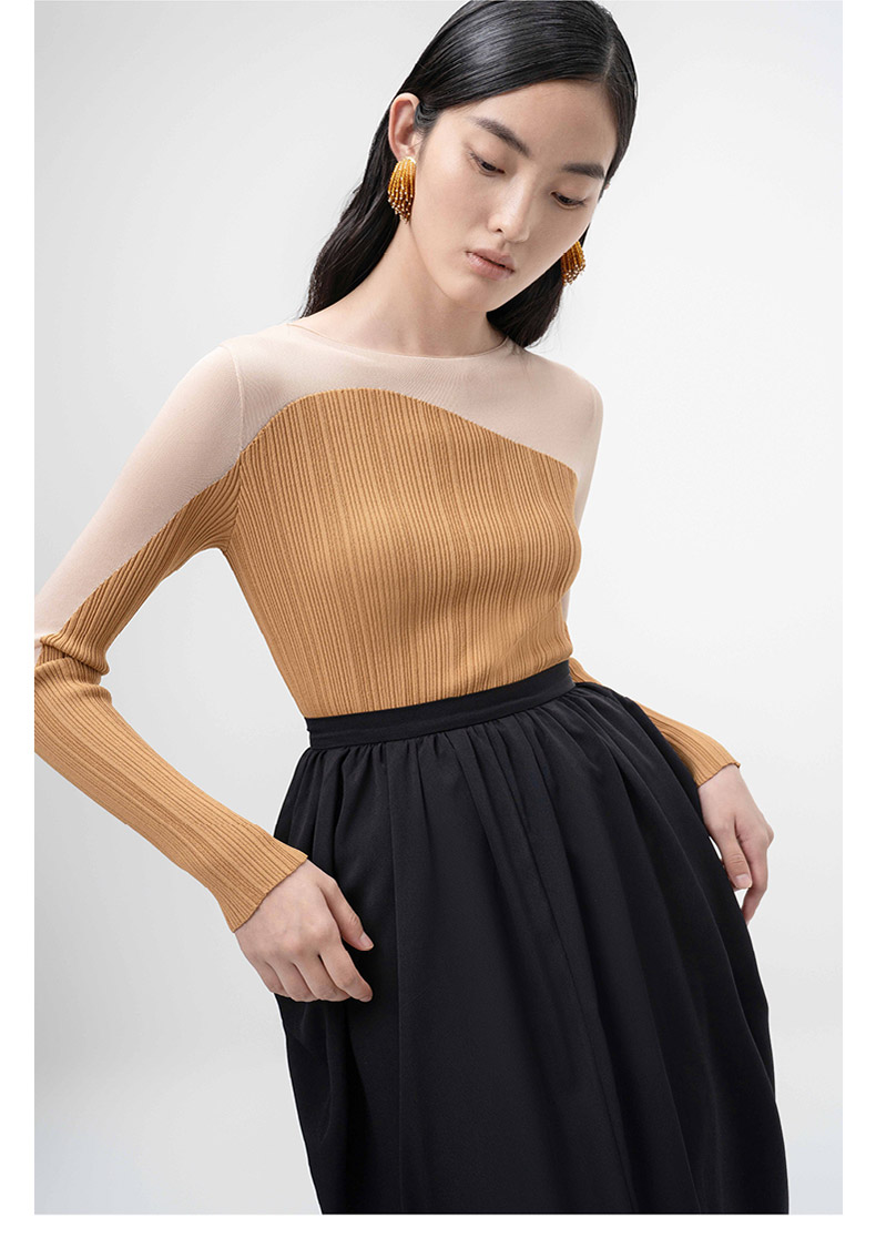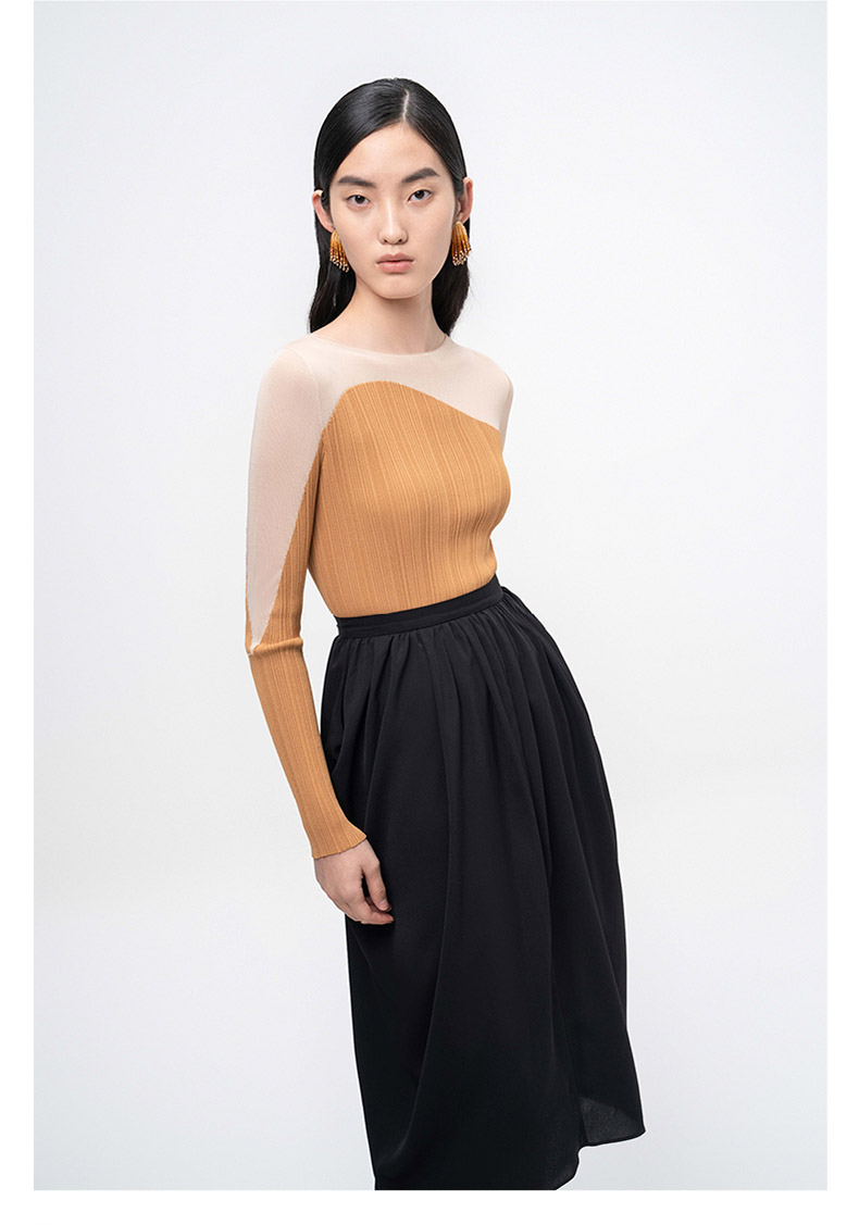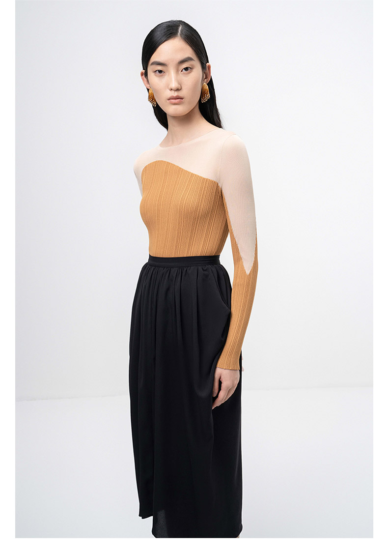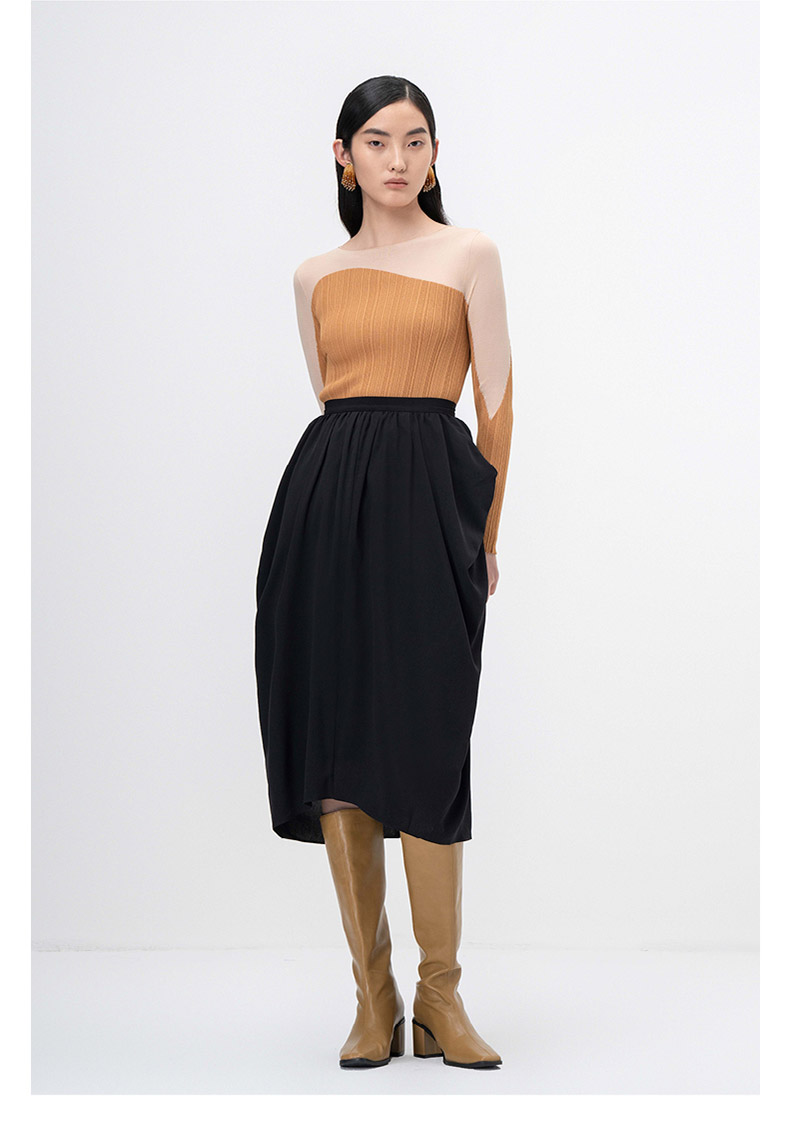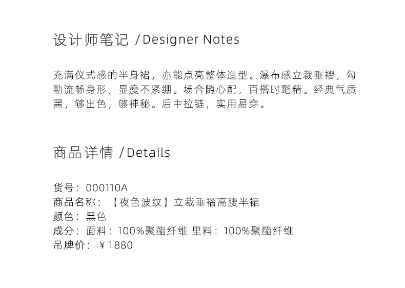 【夜色波纹】立裁垂褶设计黑色高腰半裙/000110A