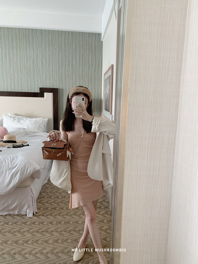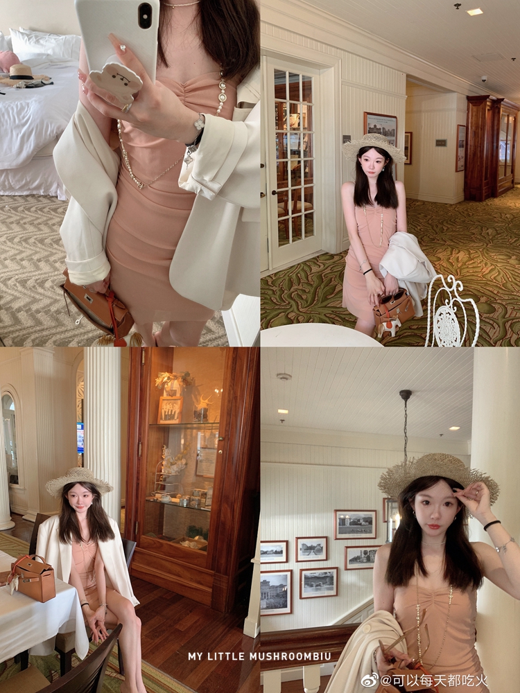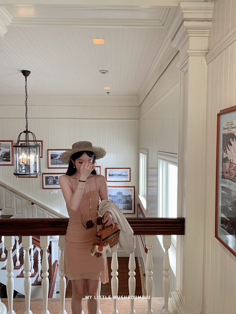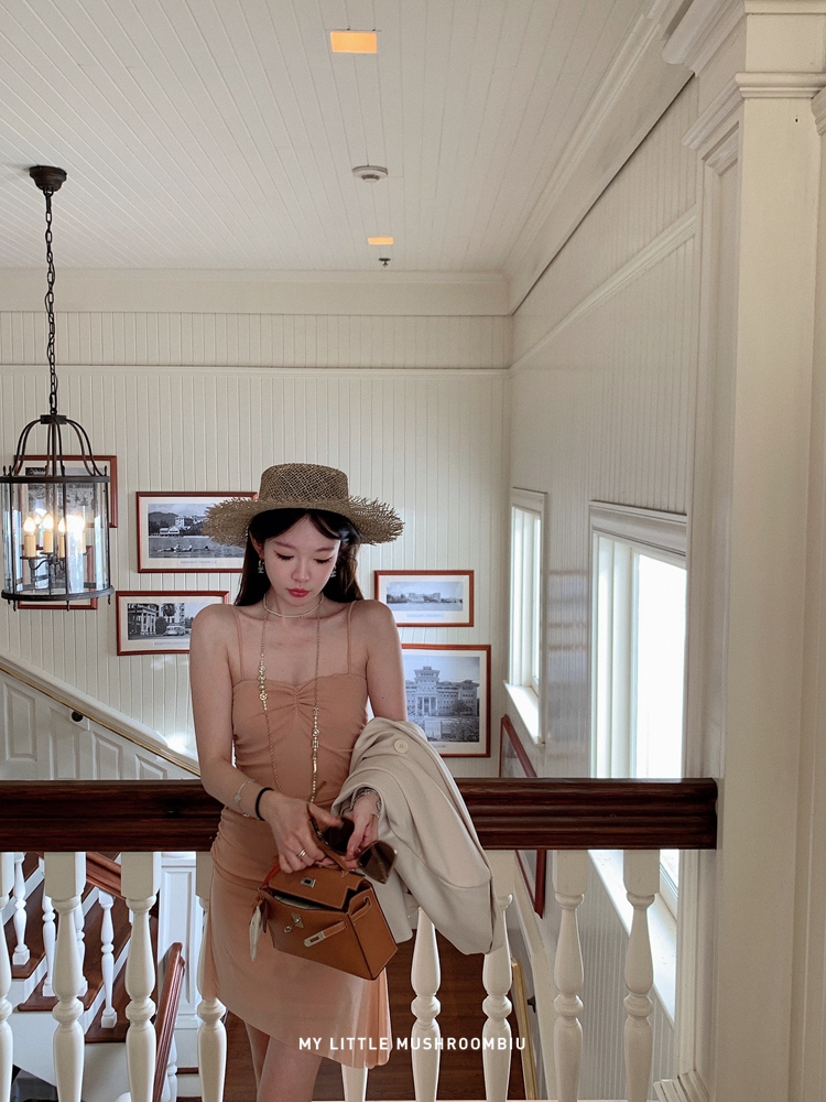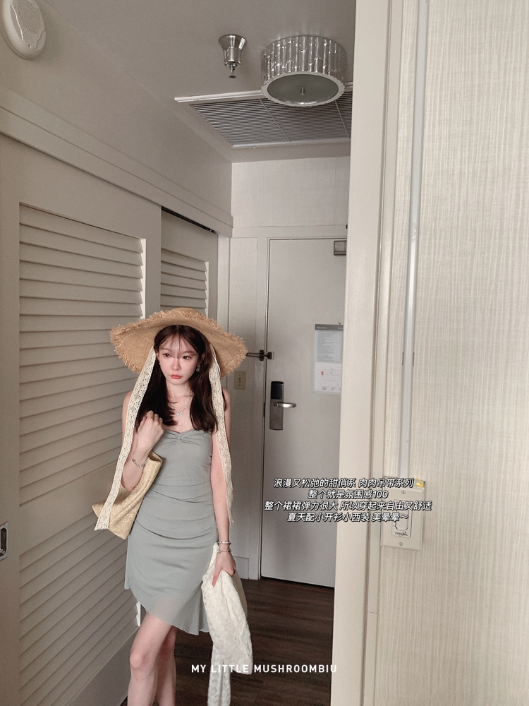 金蘑菇菇 肉肉/ 浪漫松弛娇俏感 纯欲风法式修身打底吊带连衣裙