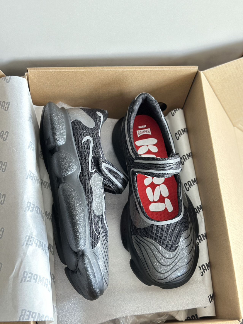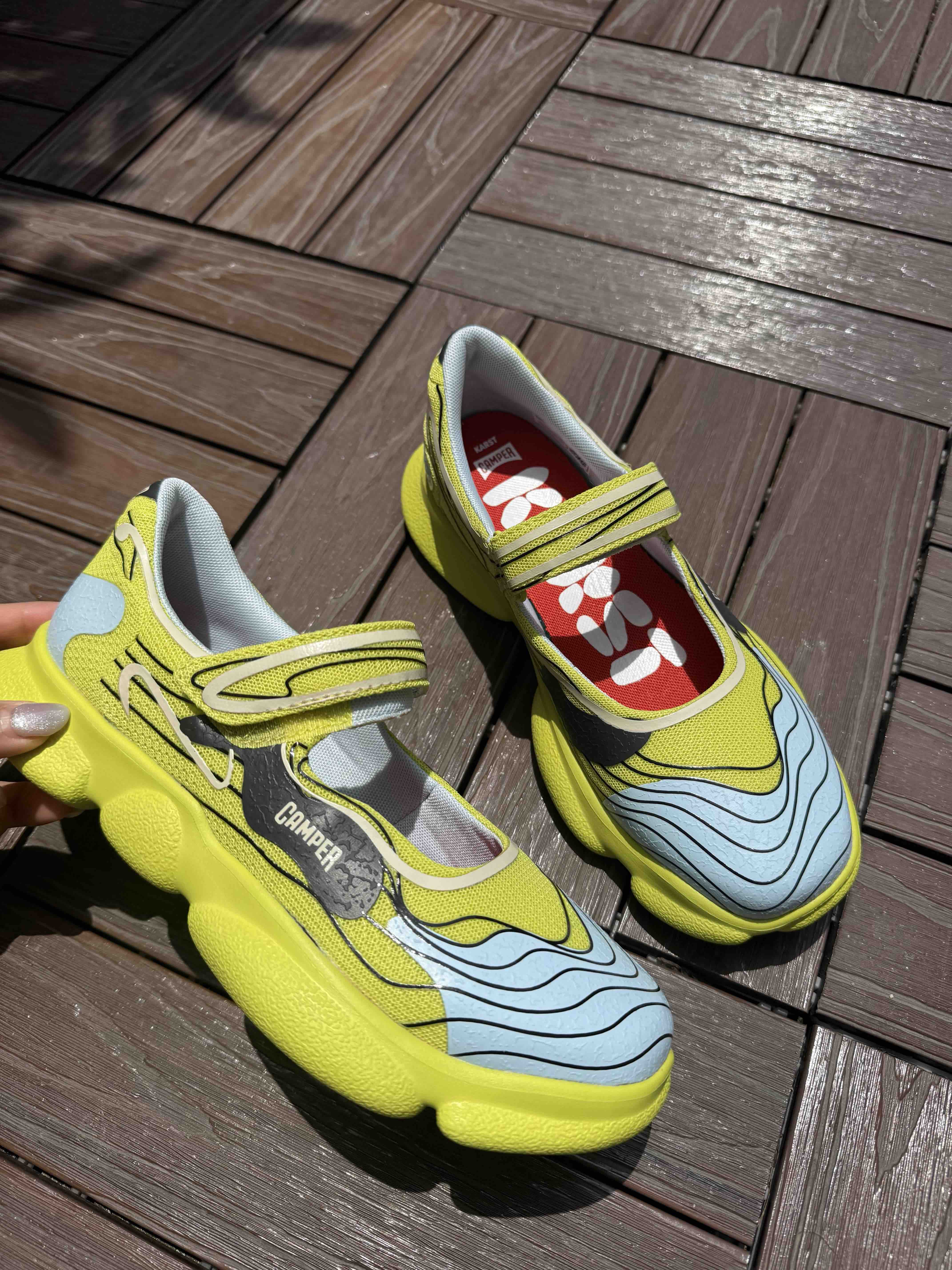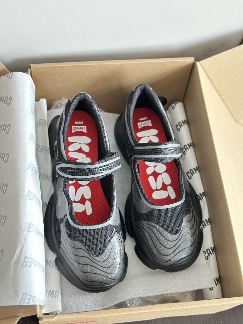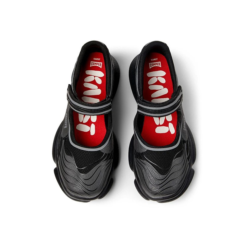 可以古用灵精怪、天马行空形来容Camp的子鞋。Karst这鞋个型灵来感自喀斯特地貌蜒蜿的等高线鞋,底用脚做掌造型,运动机能风玛丽珍,英伦复古运动风机能拼接厚底玛丽珍。
