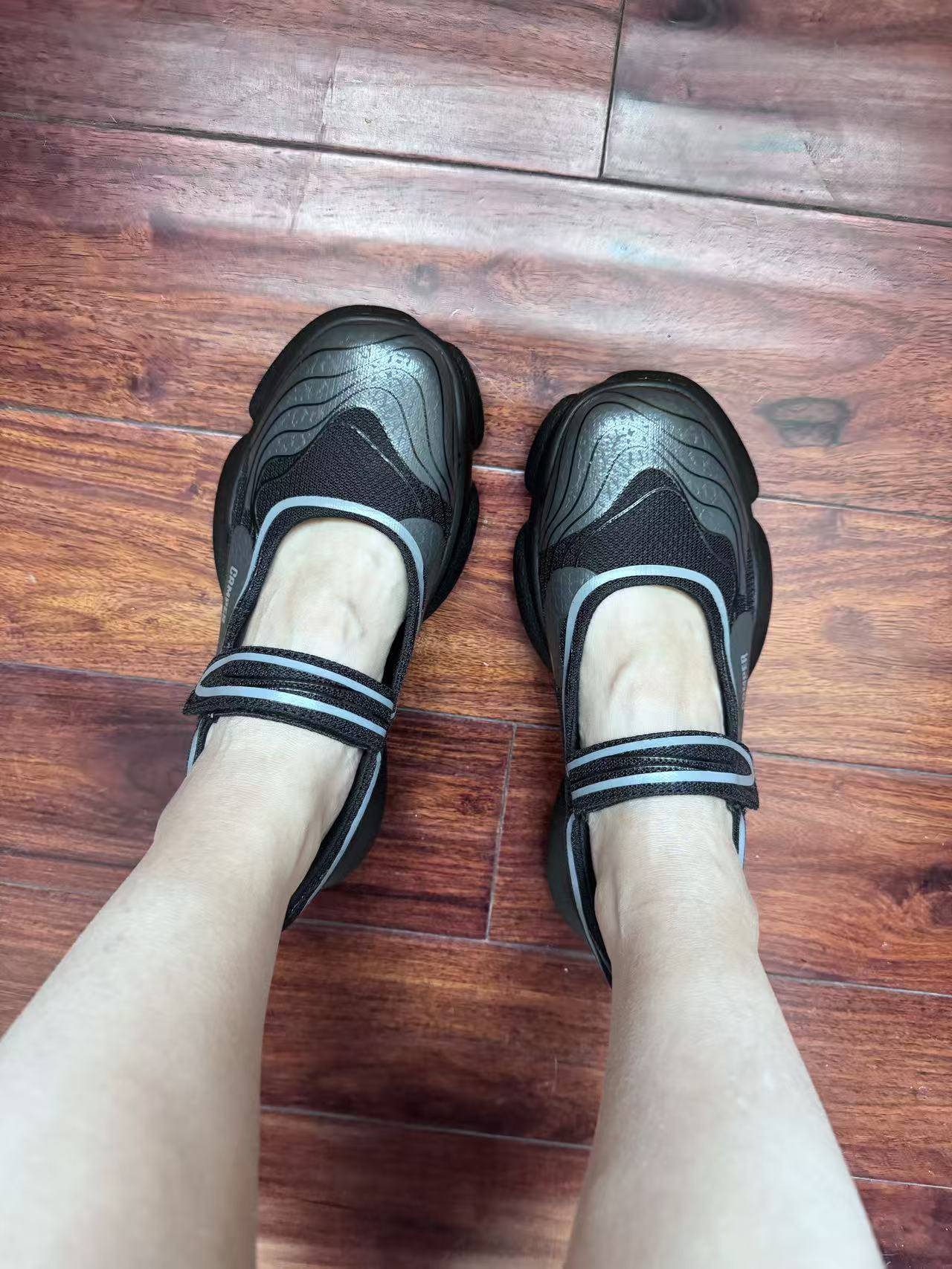 中性风方圆头!拼接鞋面细节拉满质感爆炸,机能一字带帅气玛丽珍,魔术贴调节脚背,运动风轻薄鞋身适合盛夏