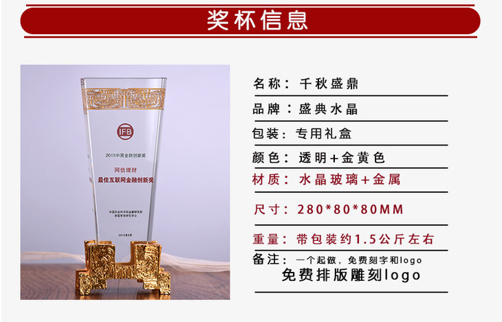 奖杯定制 水晶奖牌 金属奖 商务年会奖杯公司活动授奖奖杯