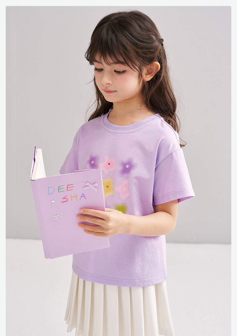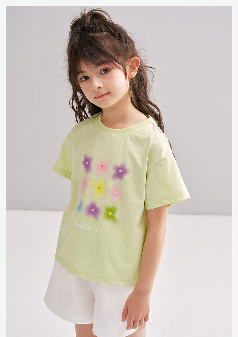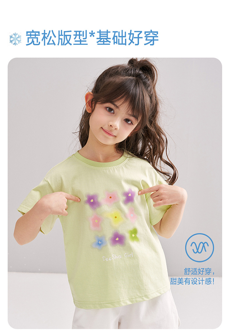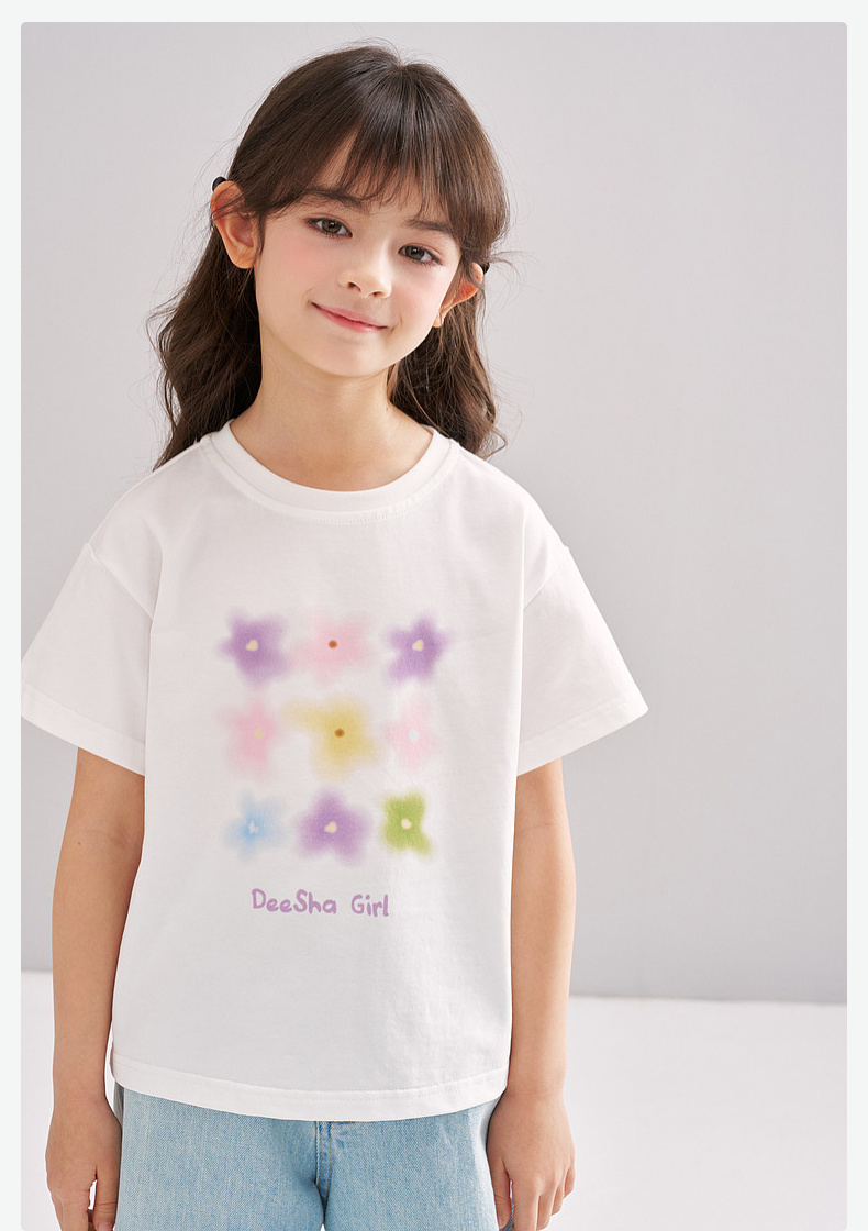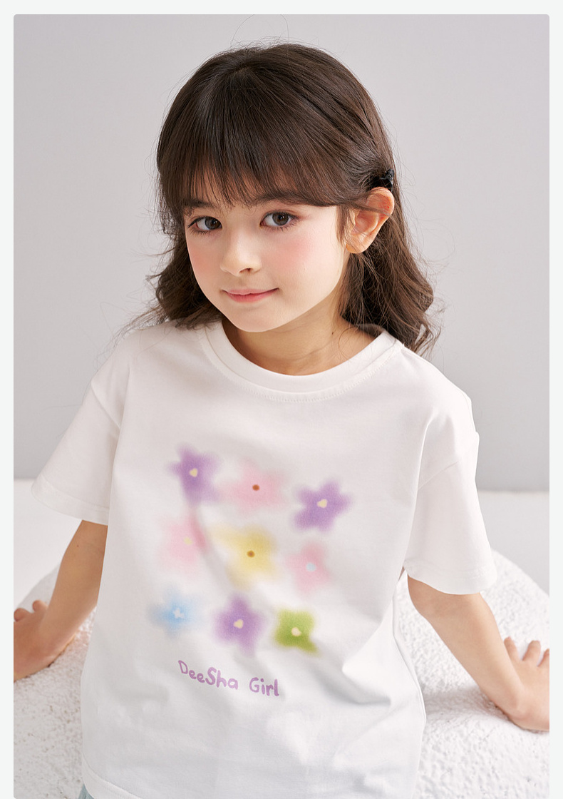 笛莎/Deesha 【松饼熊】2026年夏季新款女童索罗那原纱防晒短袖T恤