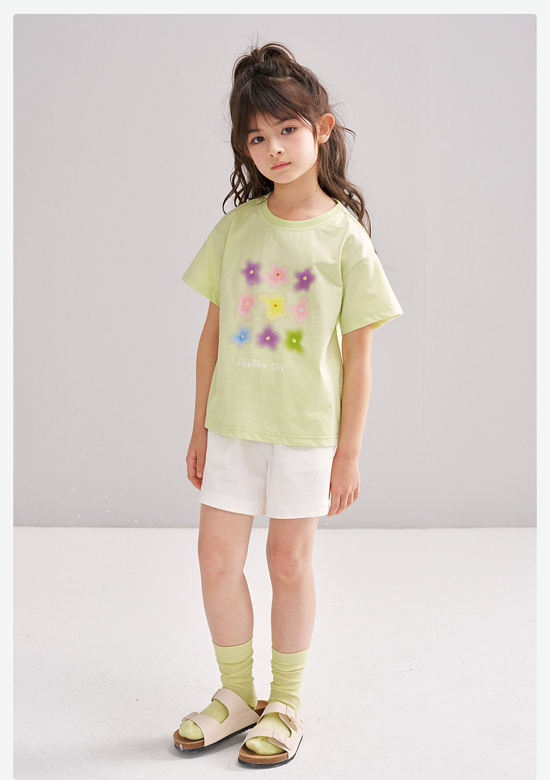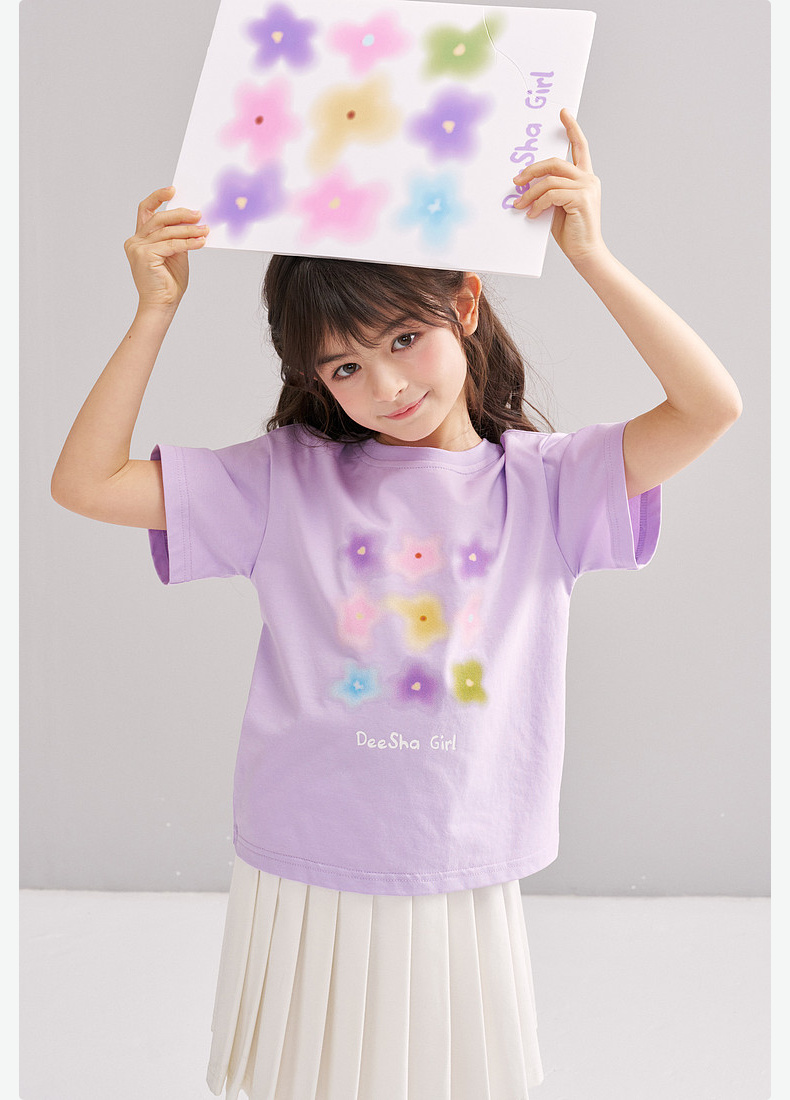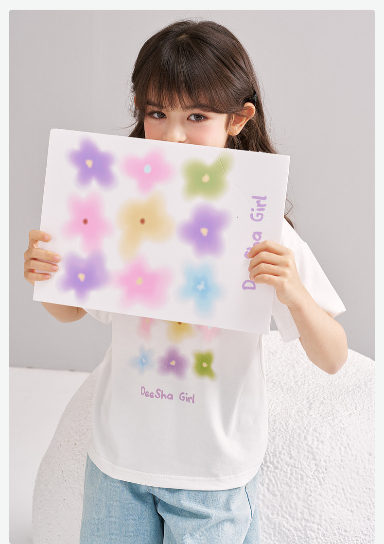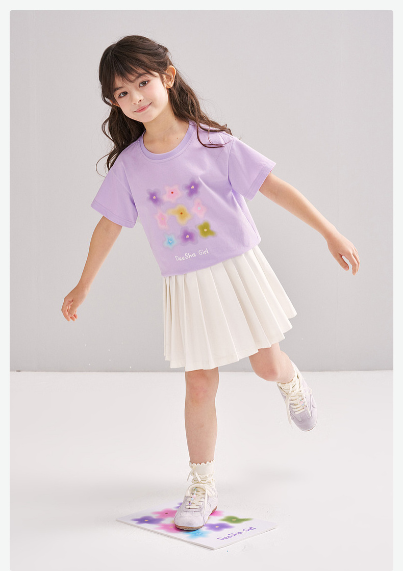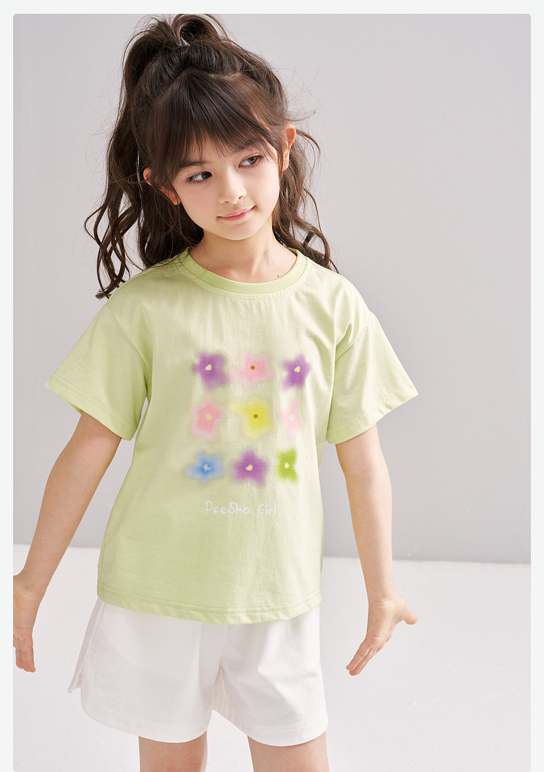 笛莎/Deesha 【松饼熊】2026年夏季新款女童索罗那原纱防晒短袖T恤