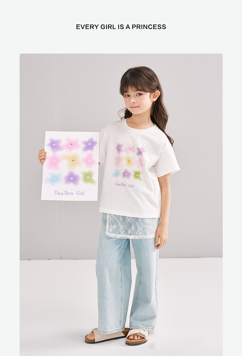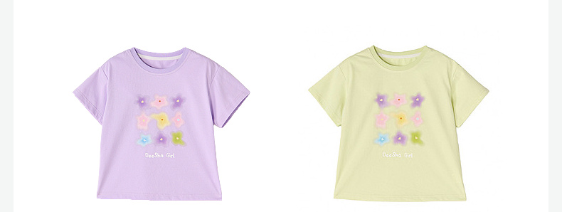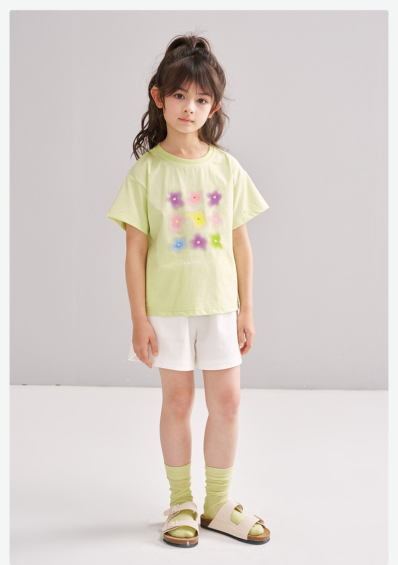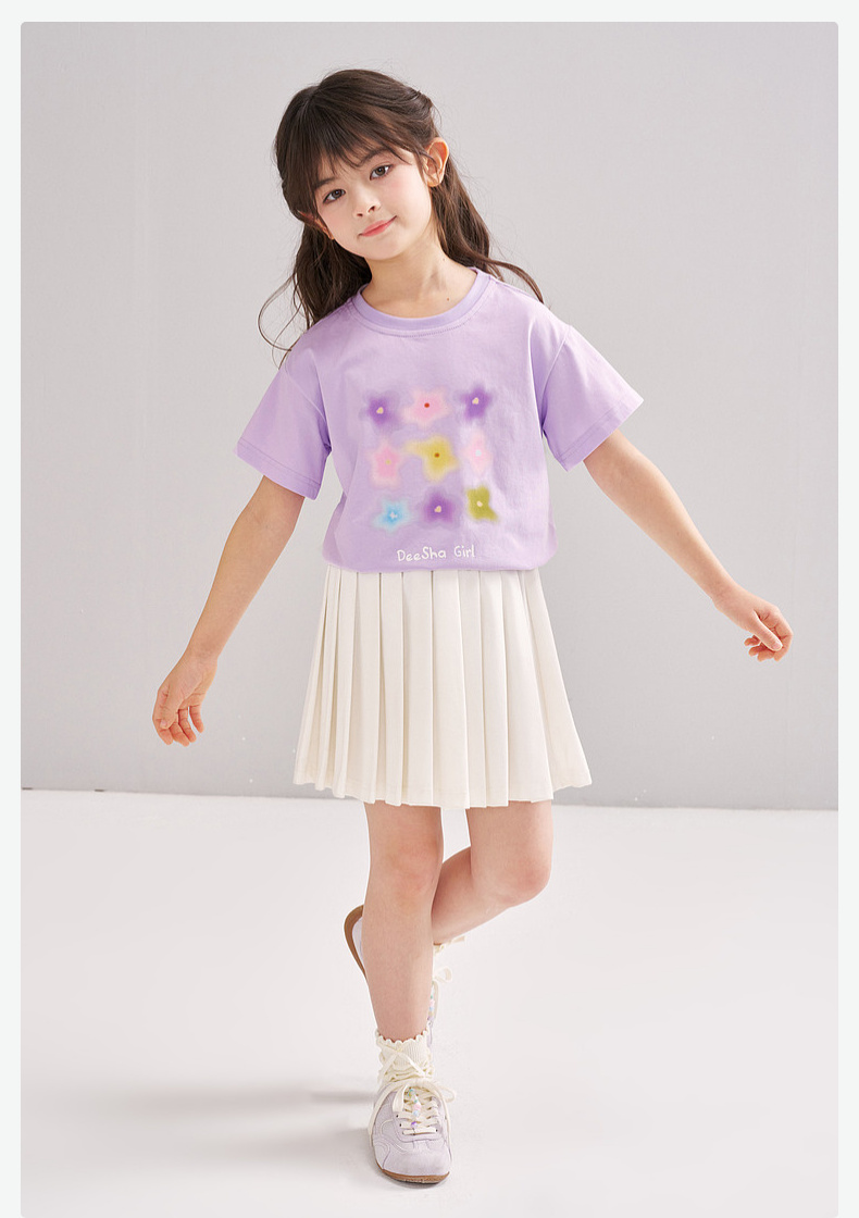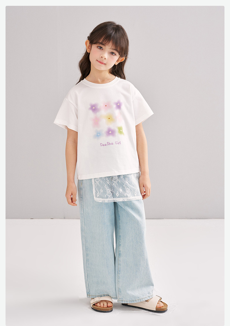 笛莎/Deesha 【松饼熊】2026年夏季新款女童索罗那原纱防晒短袖T恤