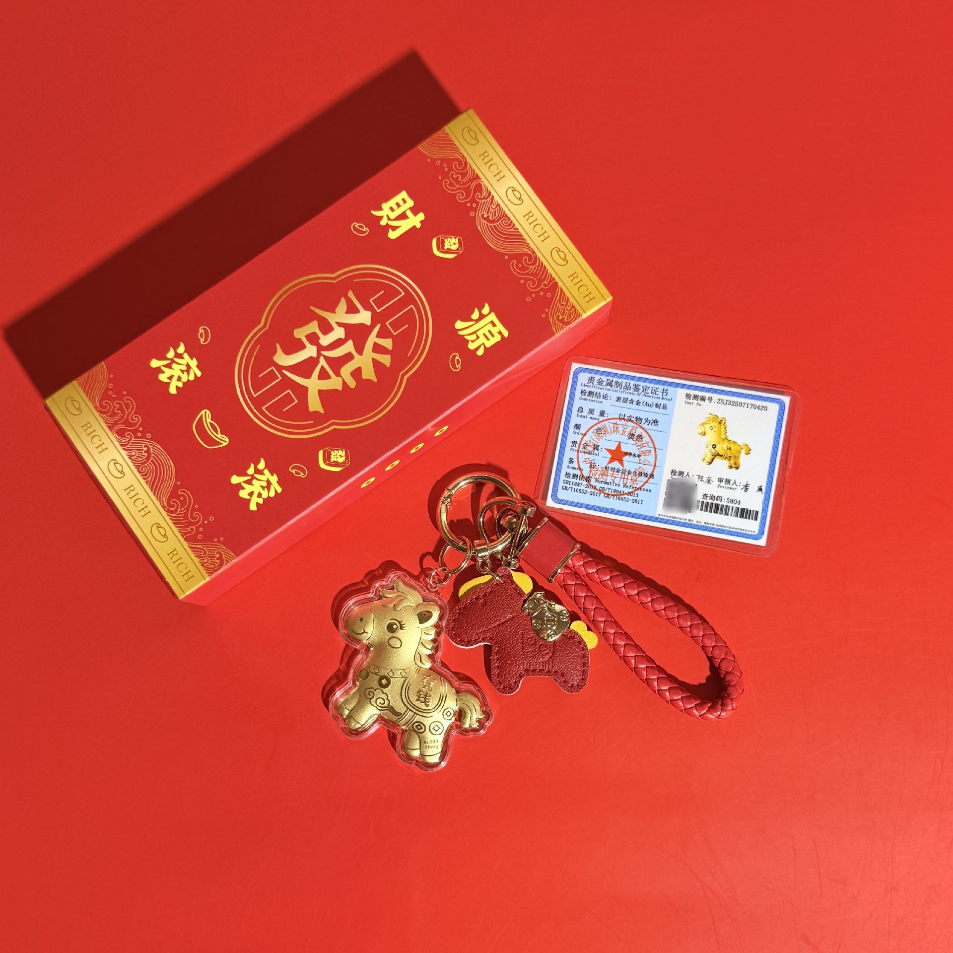 【新年必入!好运加持纳福】抖音同款新年元旦本命年马上有钱钥匙扣礼盒装黄金包包挂件手机链挂饰。ja