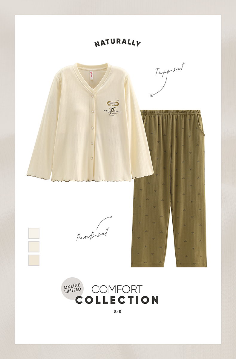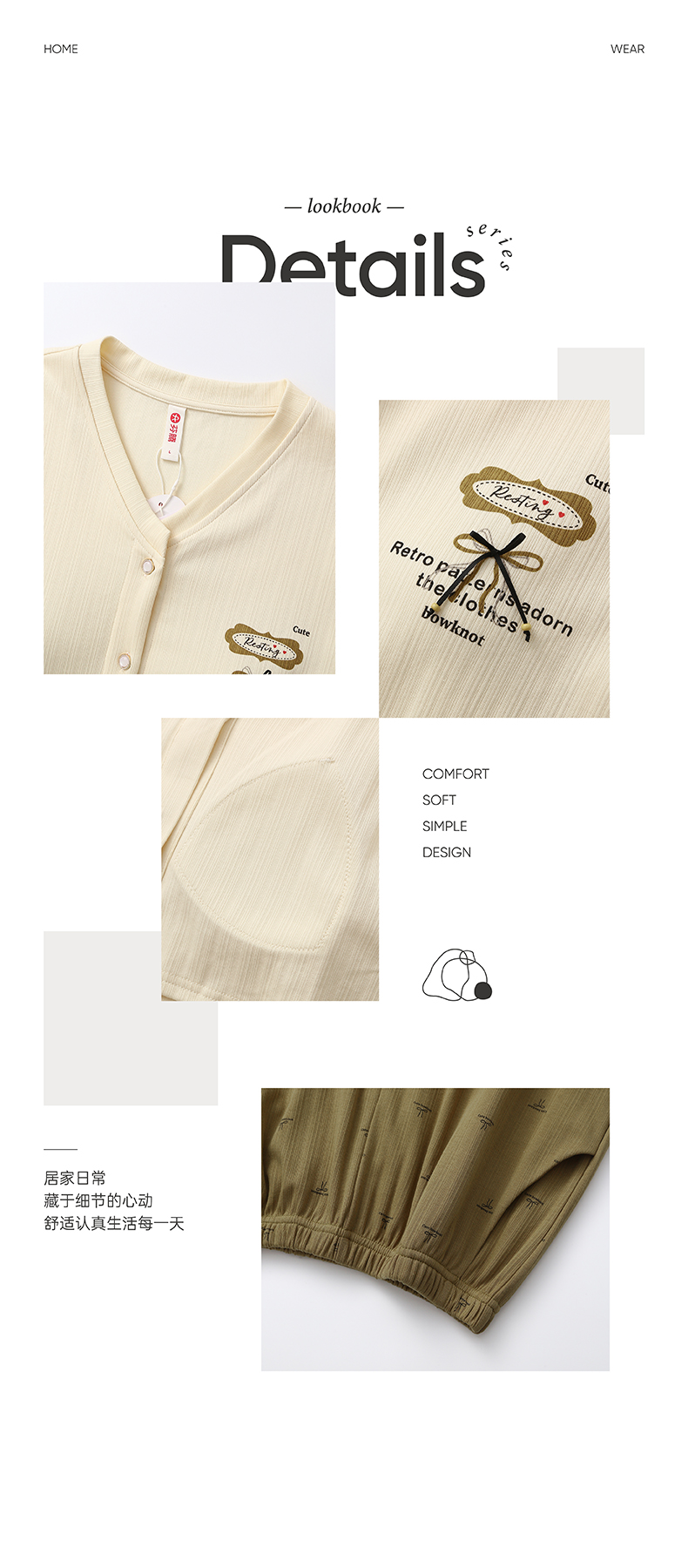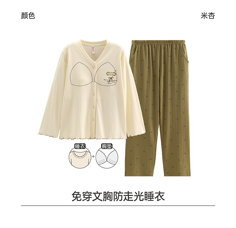 (合作款)芬腾【带胸垫】新款女士春秋季长袖长裤纯棉家居服套装yc0209016