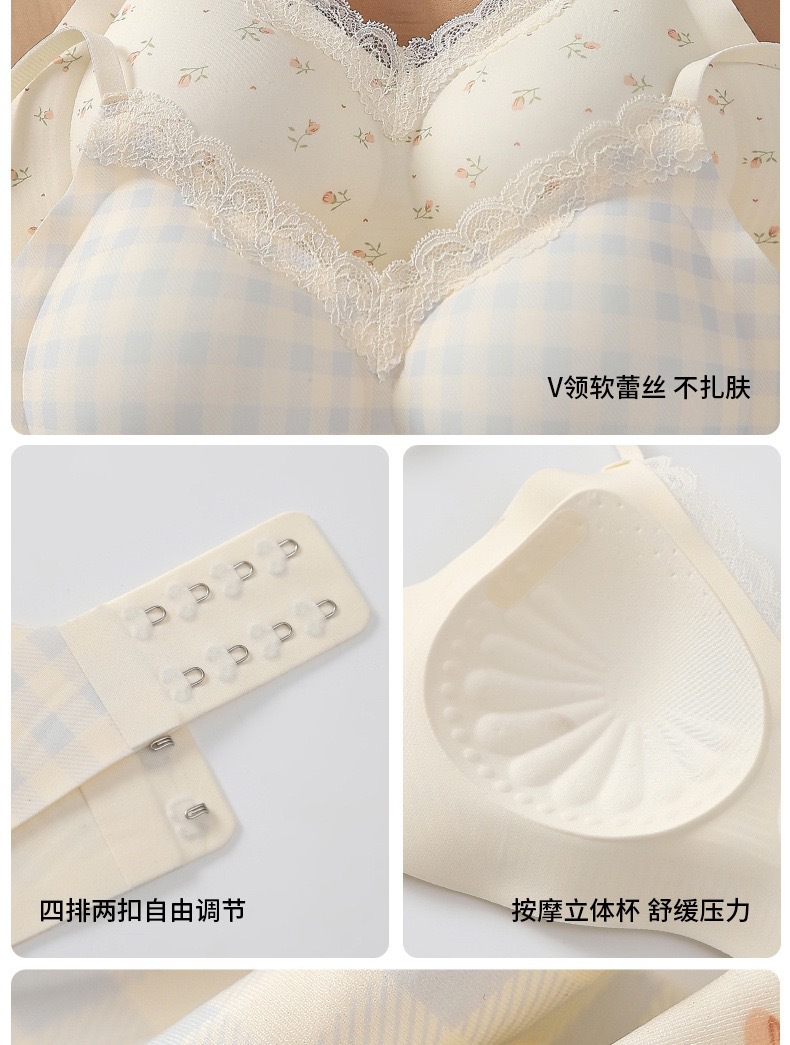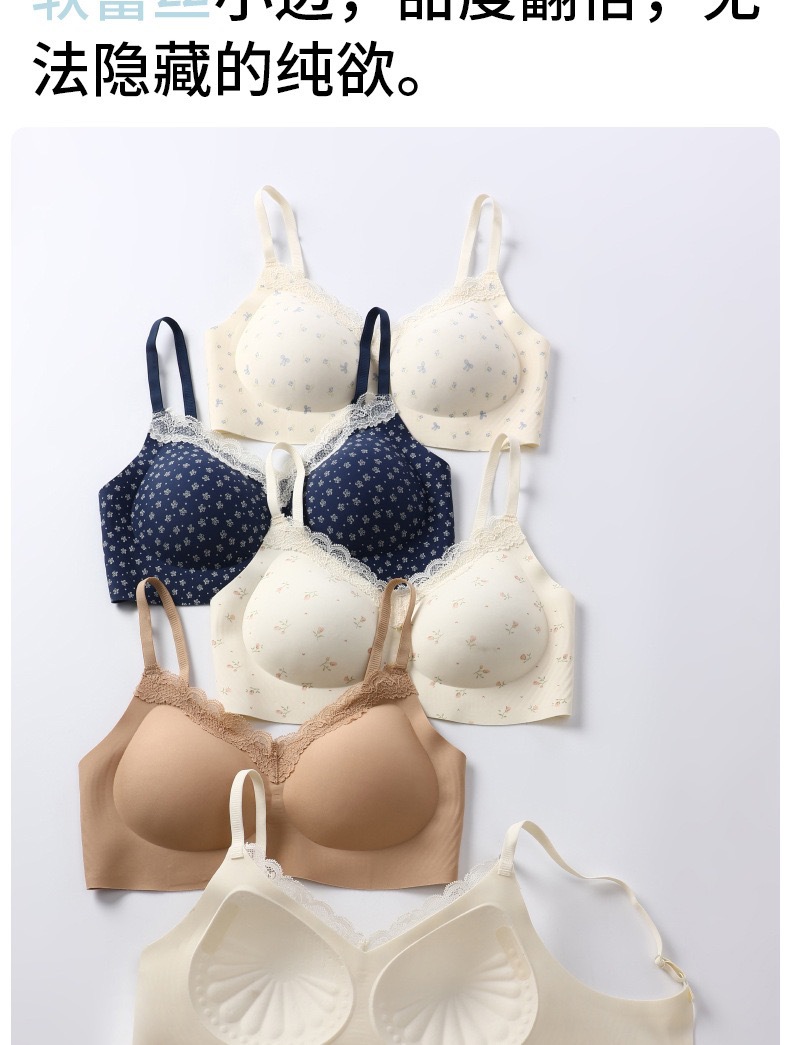 【软糯亲肤❗️高弹无痕】爆款法式碎花内衣女小胸聚拢甜美纯欲蕾丝花边无钢圈少女学生文胸。jc