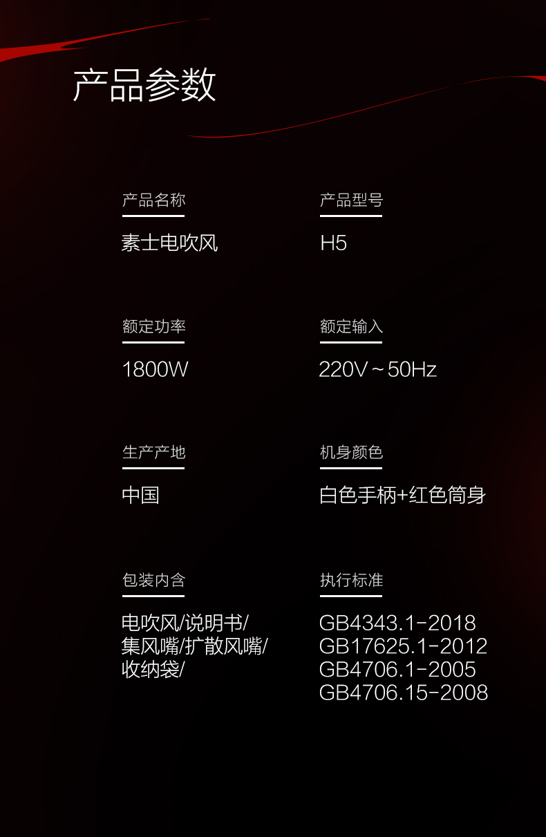 素士负离子速干电吹风 H5 女神红