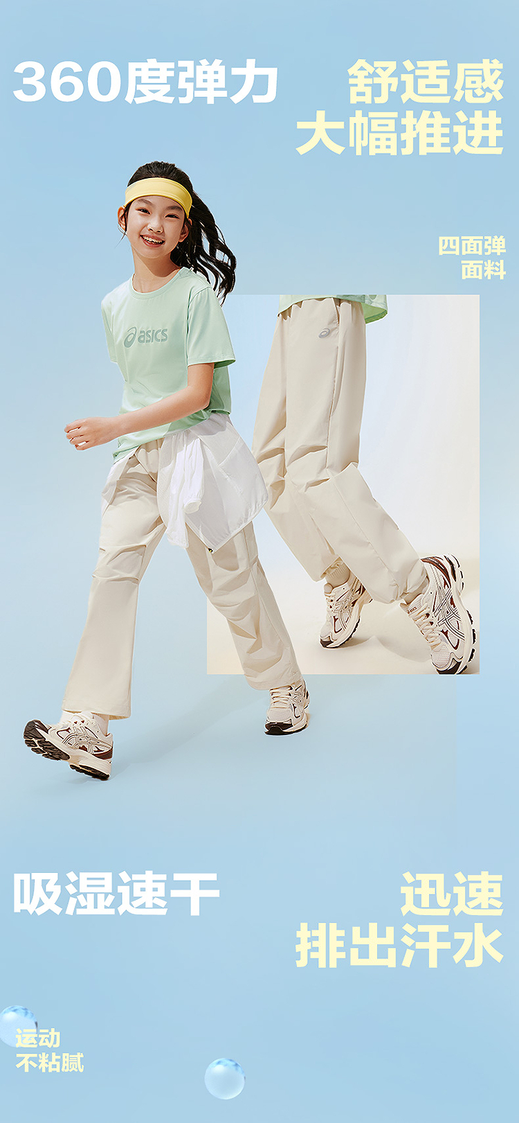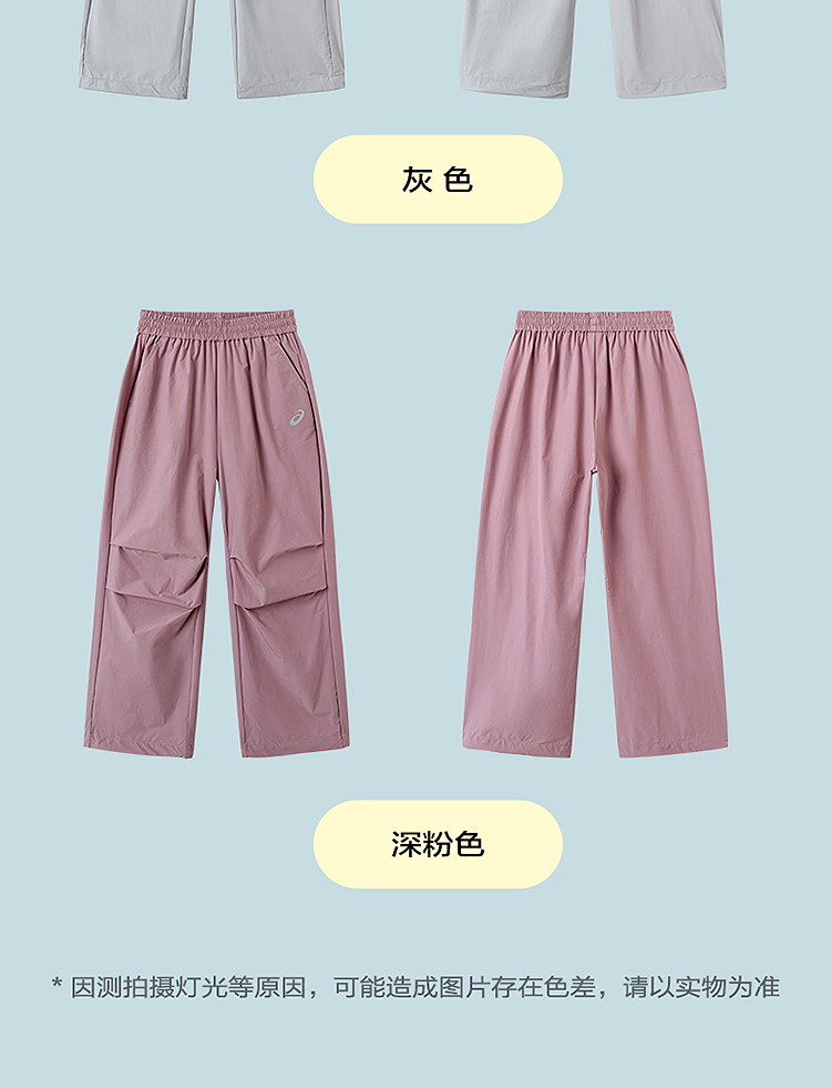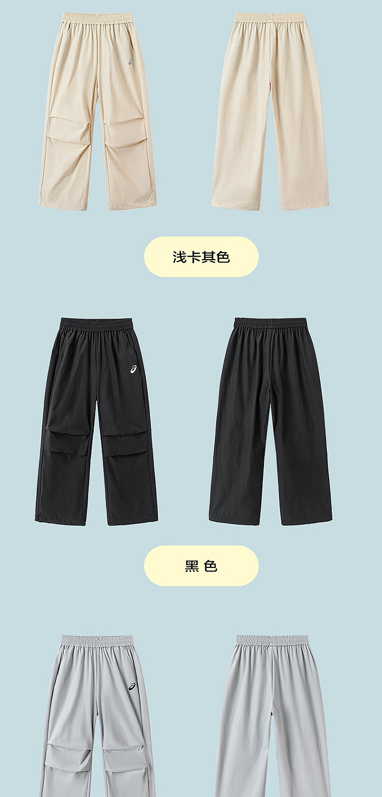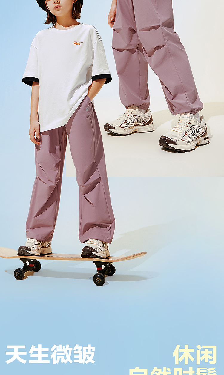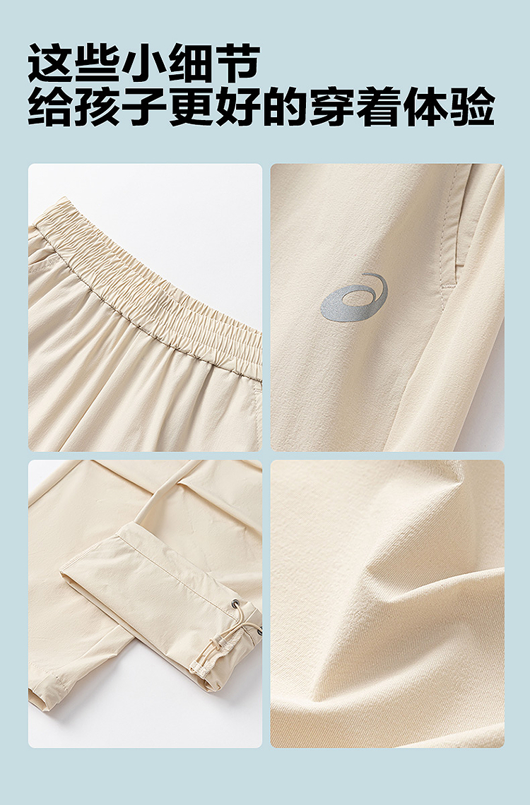 ASICS/亚瑟士儿童26年中性款梭织长裤吸湿速干弹力舒适降落伞裤型