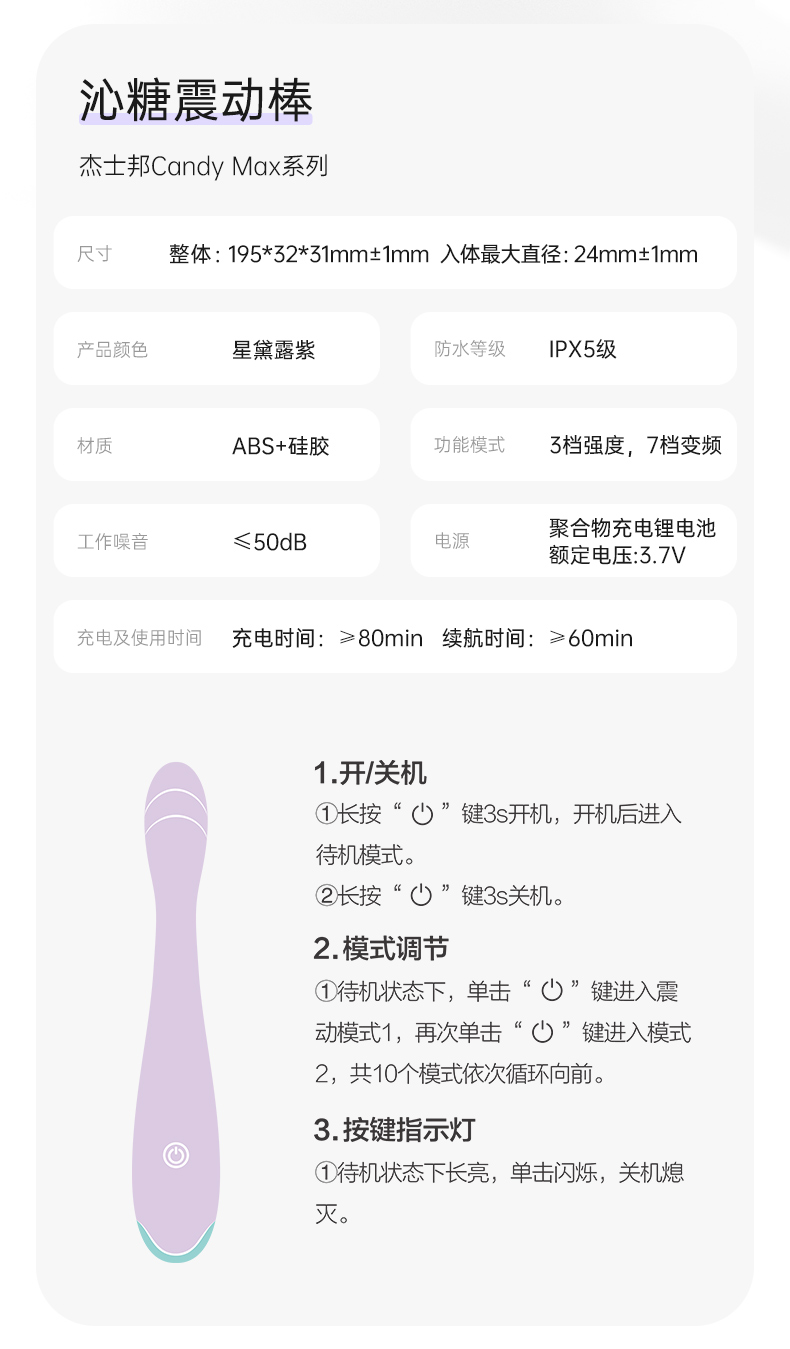 杰士邦Candy Max系列沁糖细型震动棒(JCQTB)