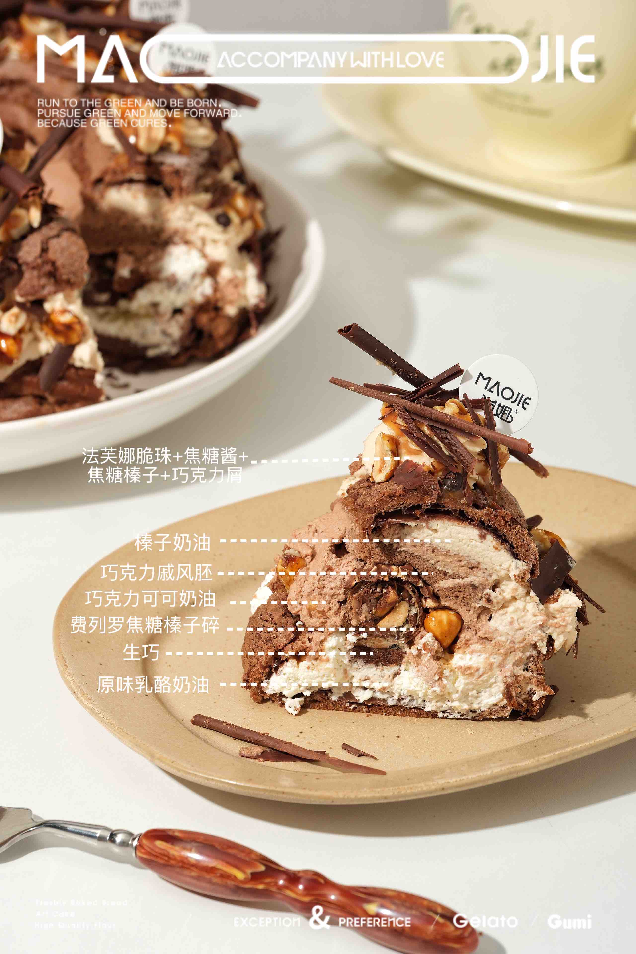 ✅口味组成:泡芙、巧克力戚风蛋糕、榛子奶油、蓝风车奶油、费列罗榛子碎、生巧、原味乳酪奶油、焦糖榛子碎