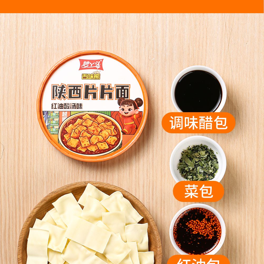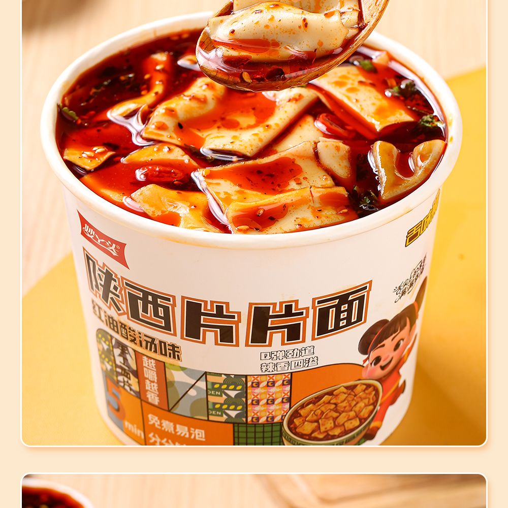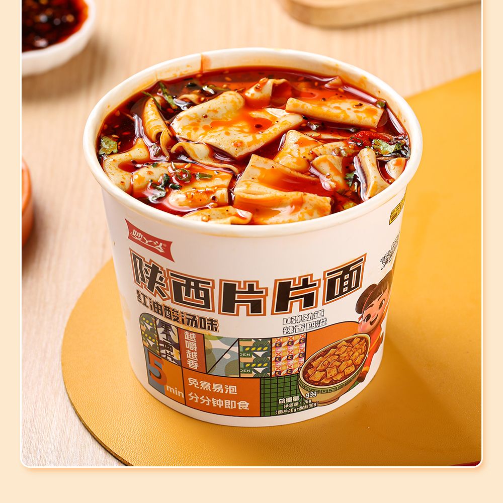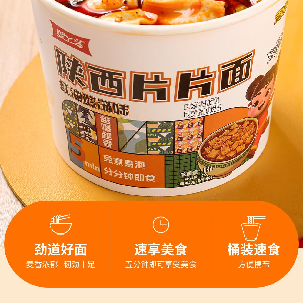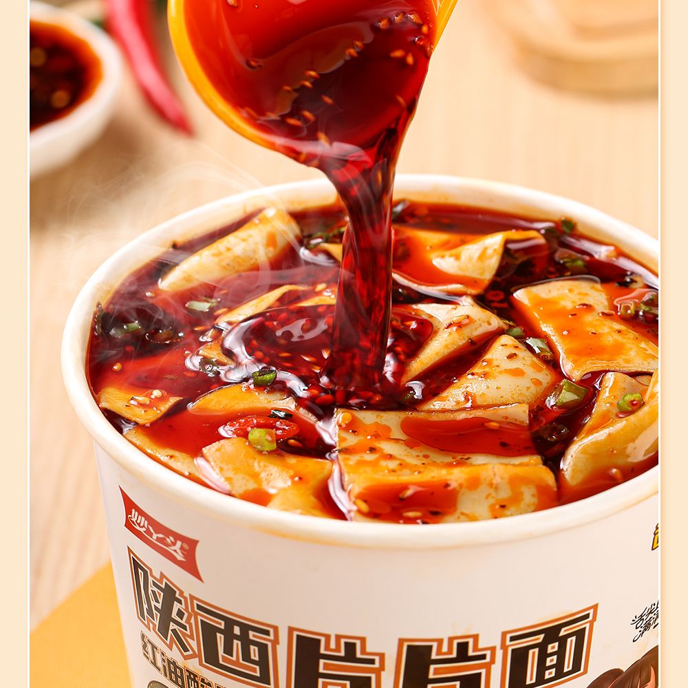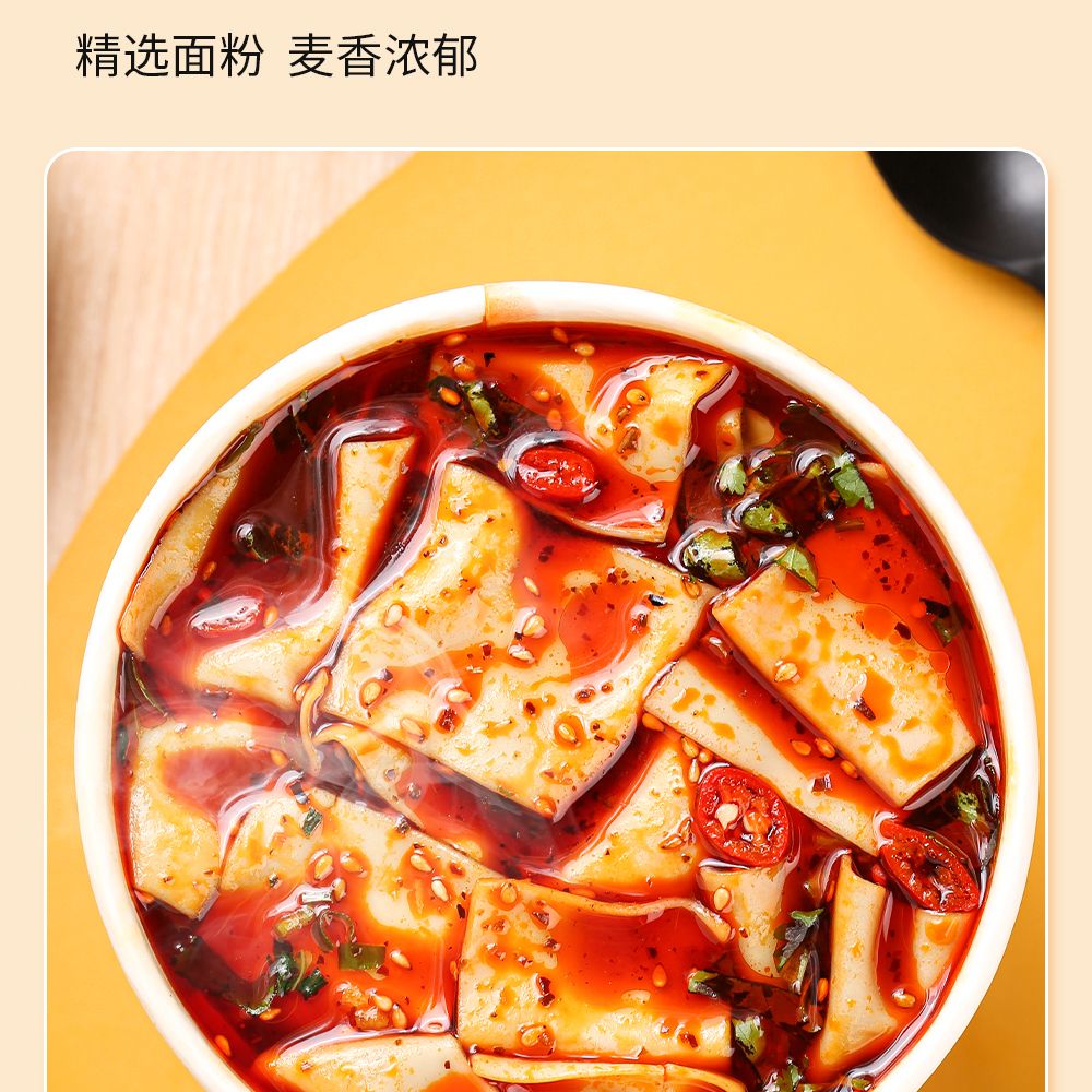 【秒杀❗️14.9抢4桶🔥正宗陕西片片面】手工面皮,入口顺滑,Q弹劲道,辣香四溢!香辣非油炸红油酸汤味免煮读书学生开学季早餐代餐-d