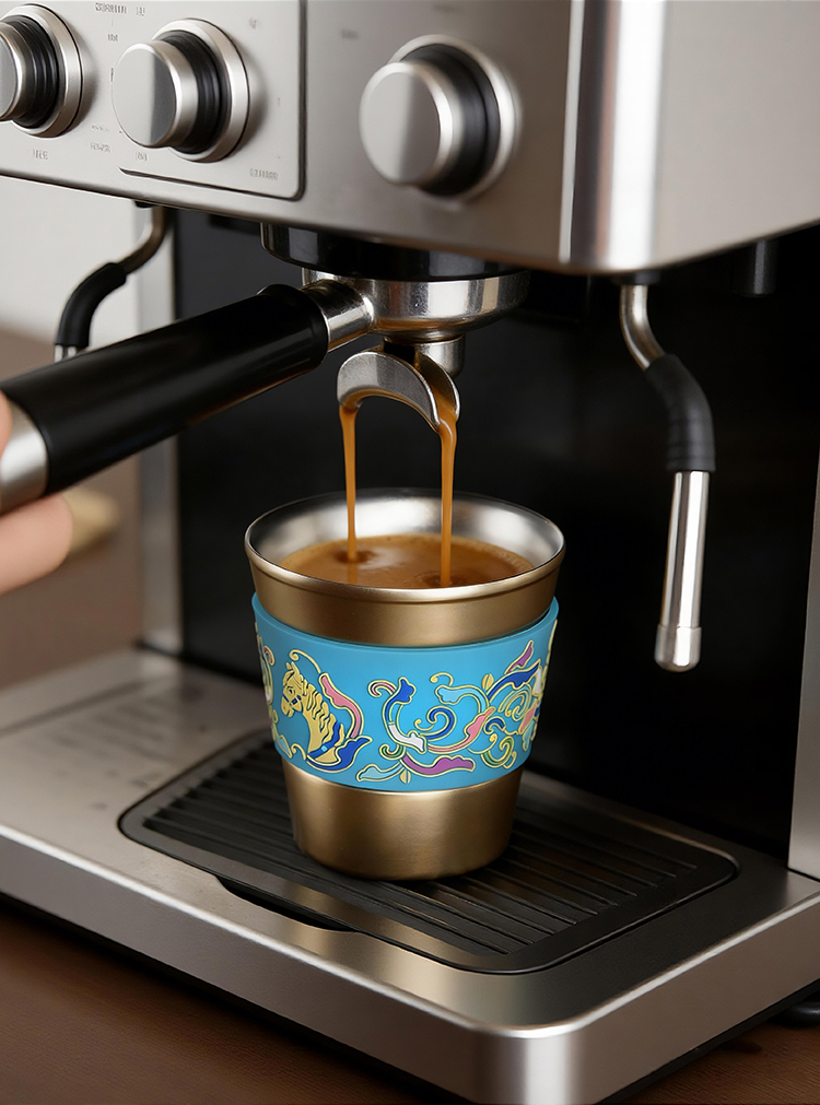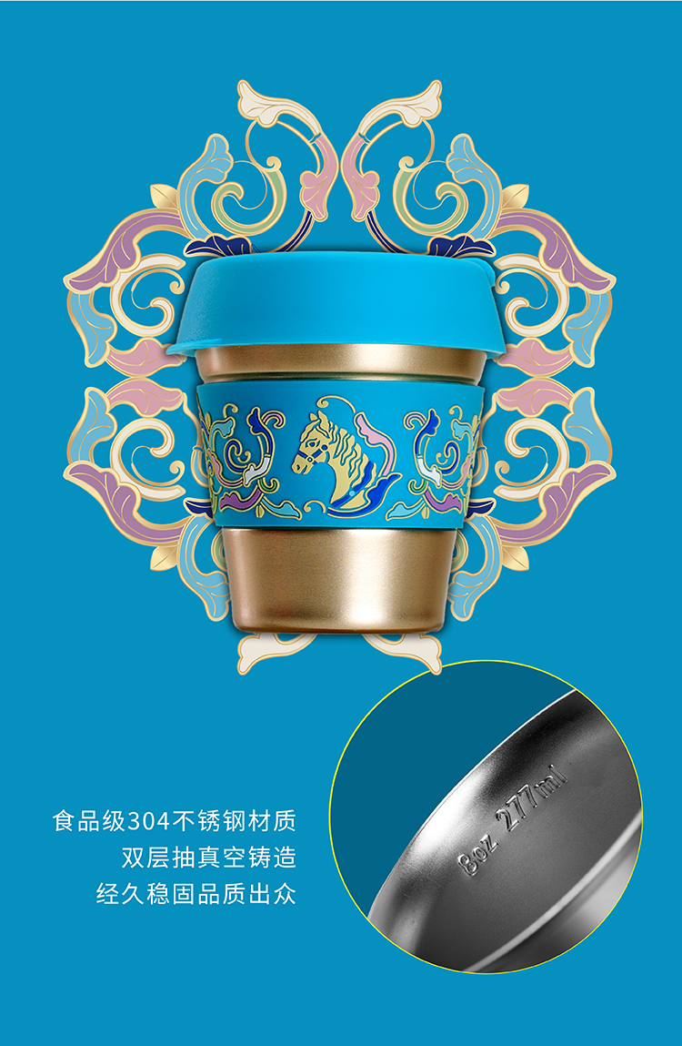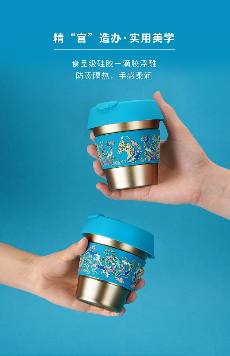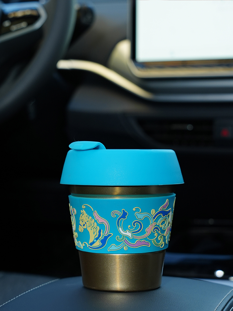 宫廷随行杯-黄缎牡丹凤蝶随行杯