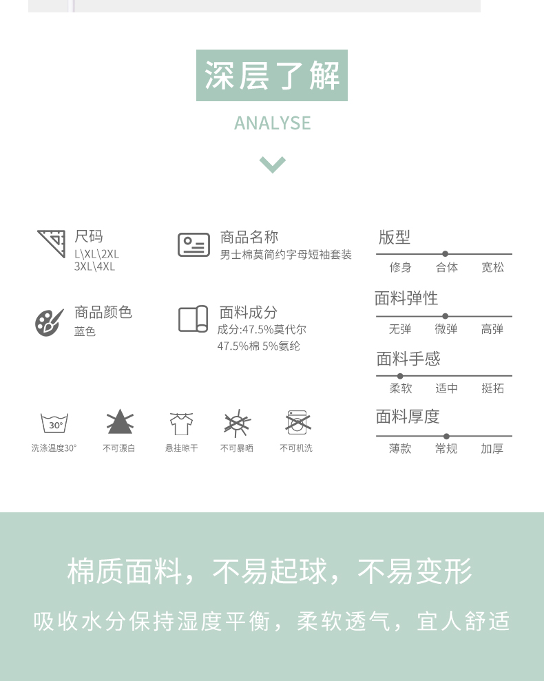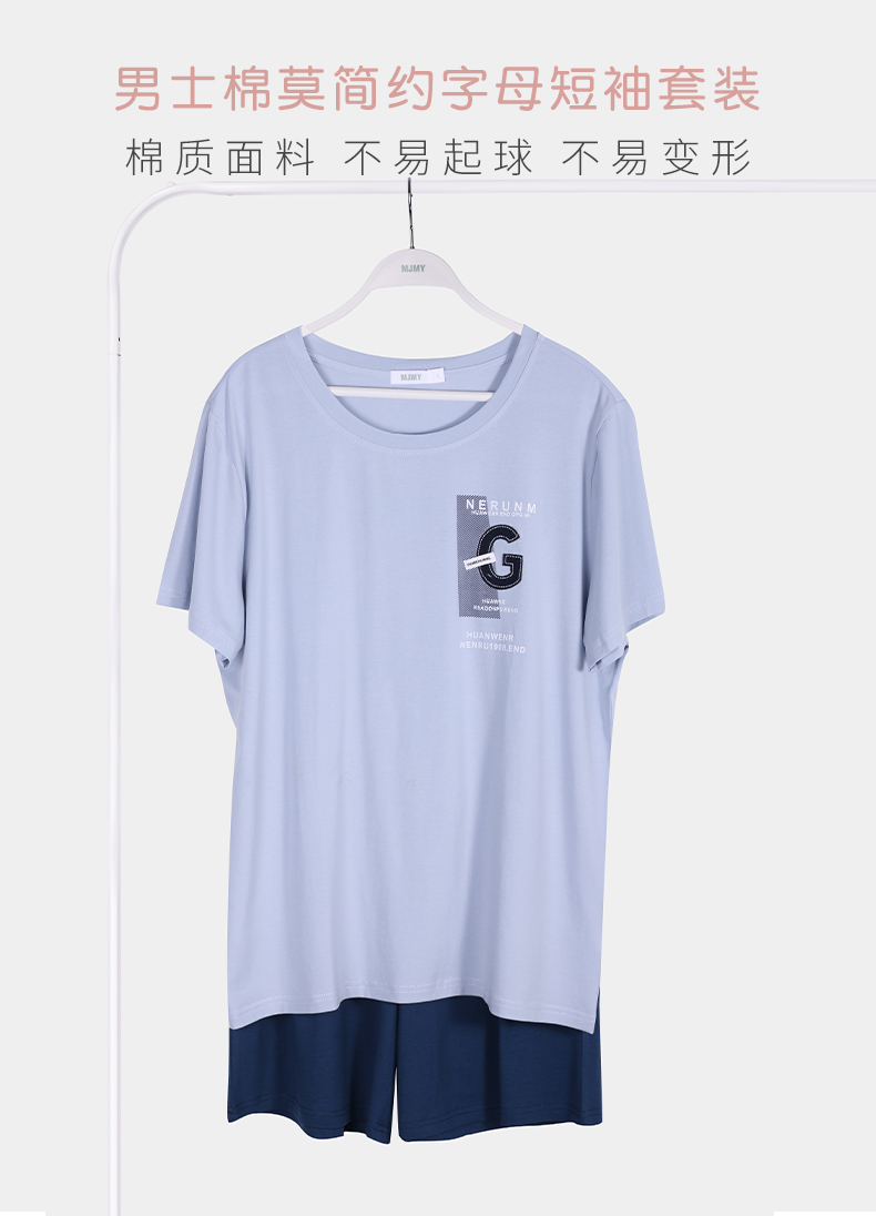 美季美优男士棉莫简约字母短袖套装J426304