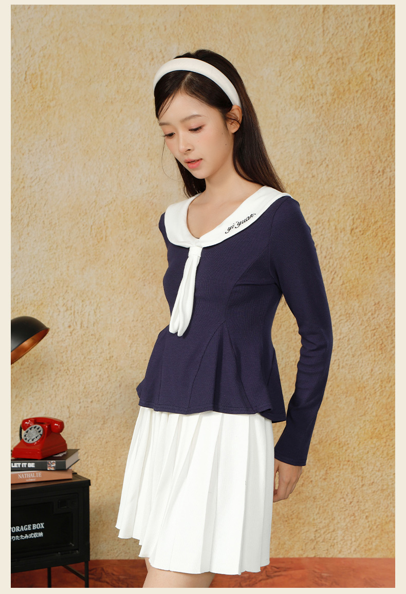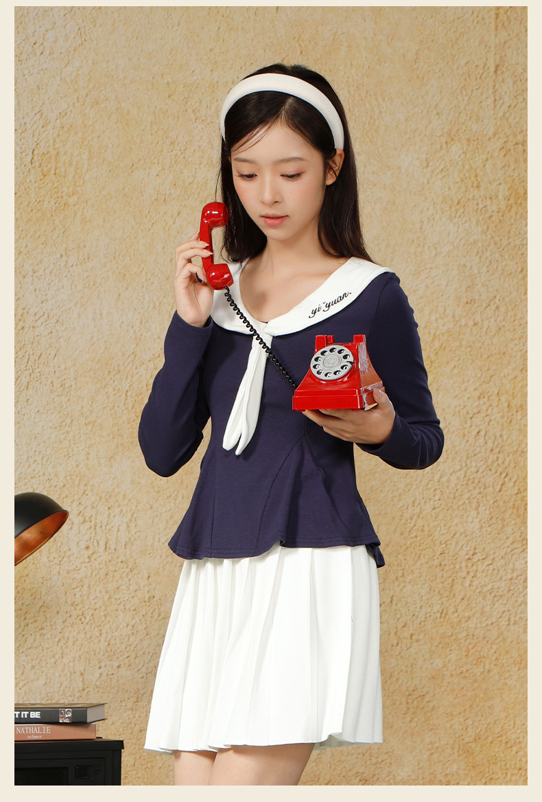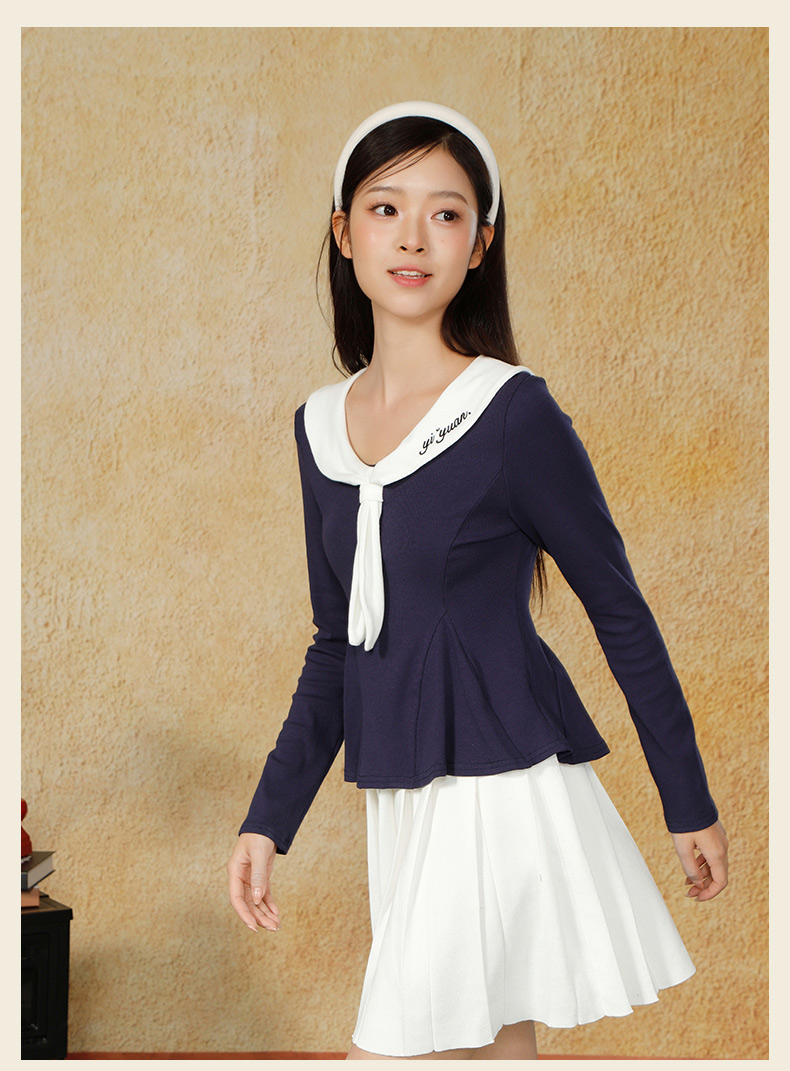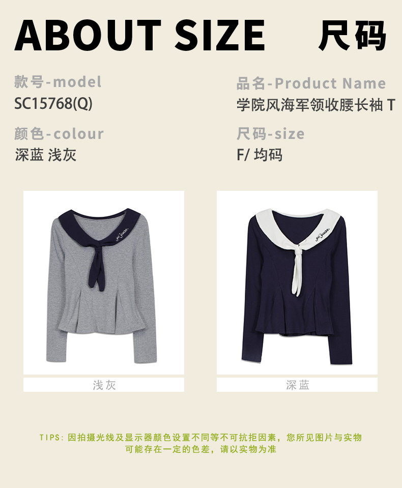 学院风海军领收腰长袖T纪念日百货门店同款164543087