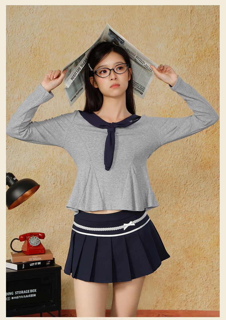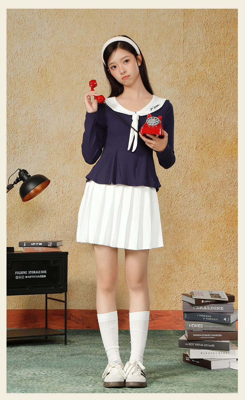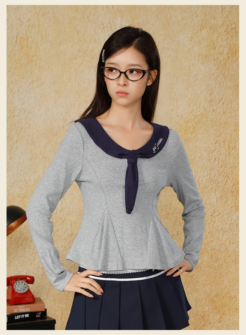 学院风海军领收腰长袖T纪念日百货门店同款164543087