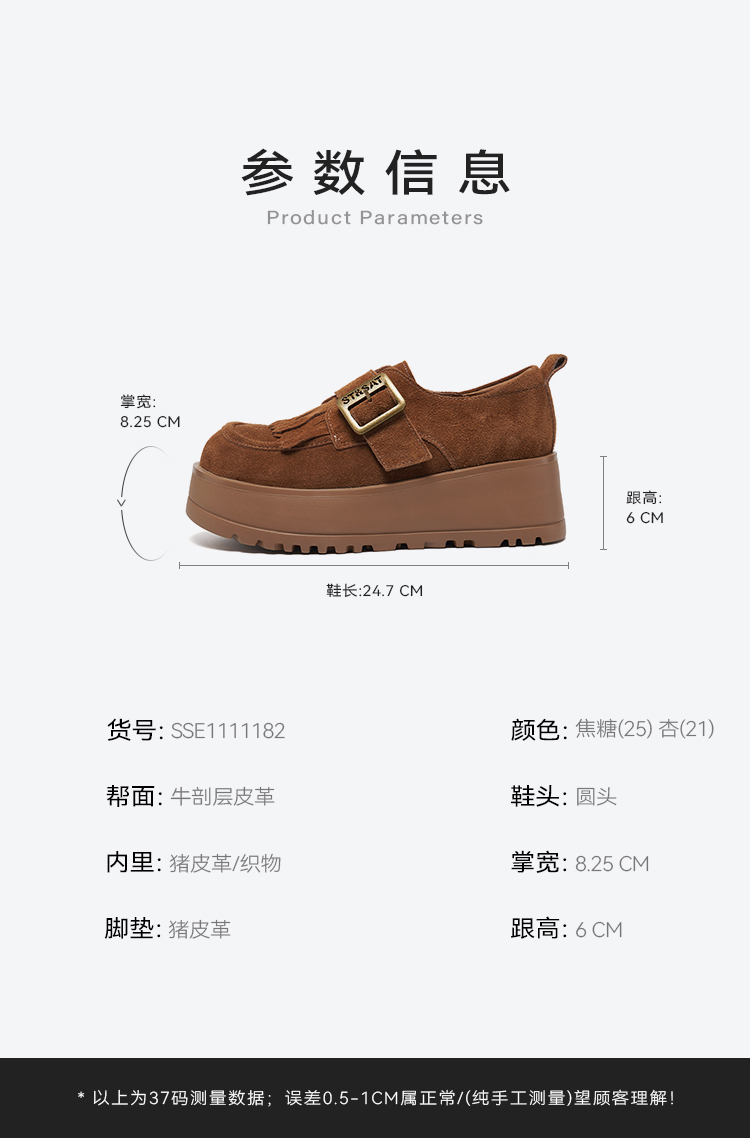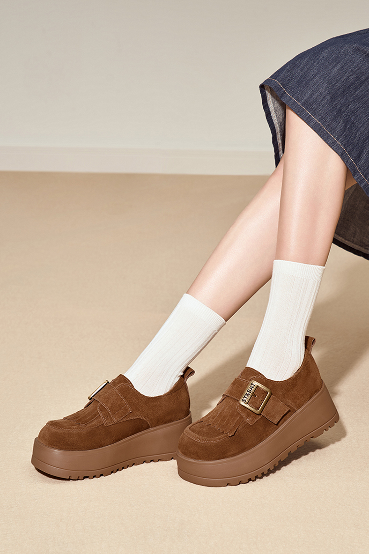 星期六26春新款英伦流苏单扣厚底乐福SSE1111182