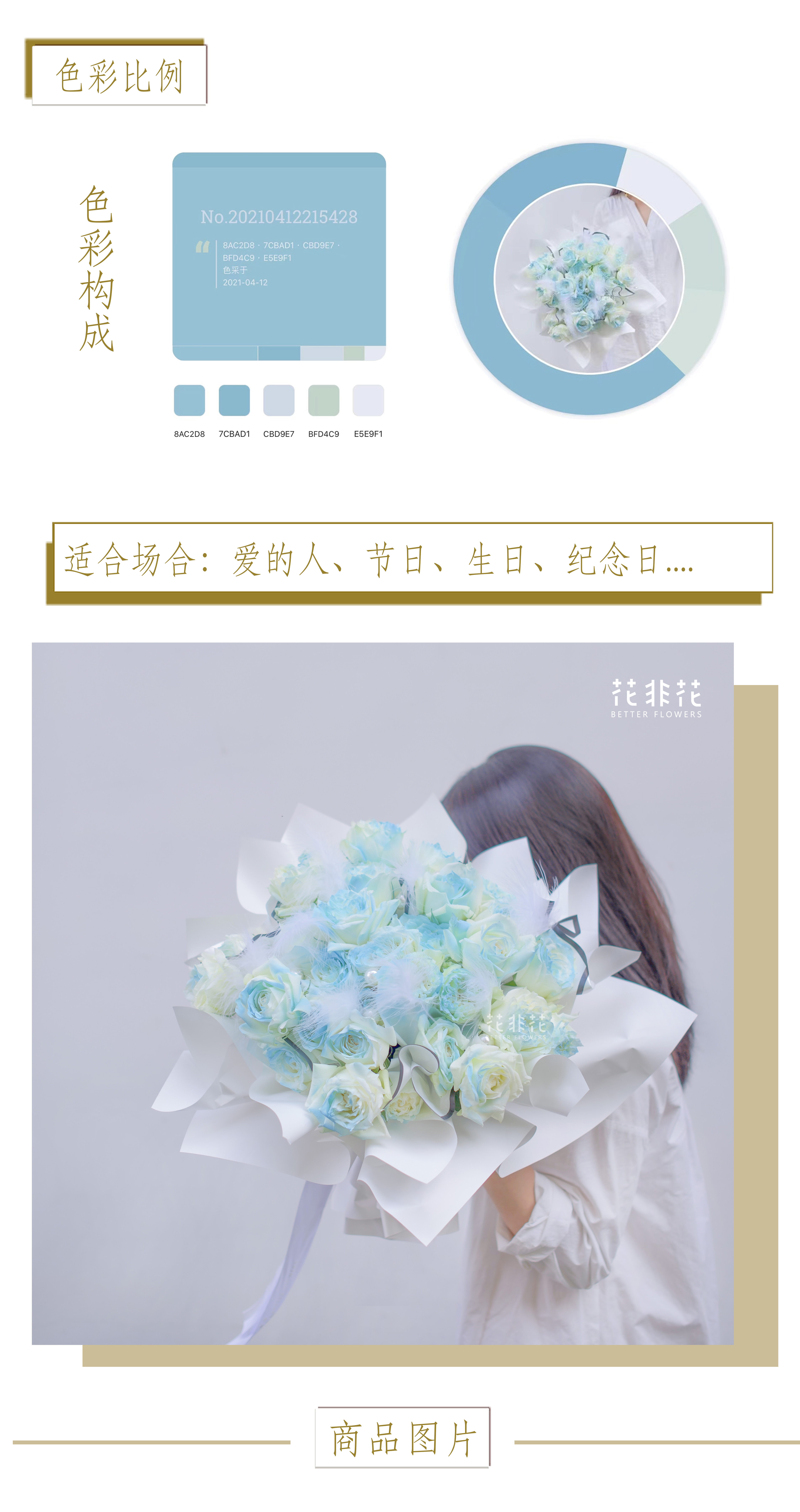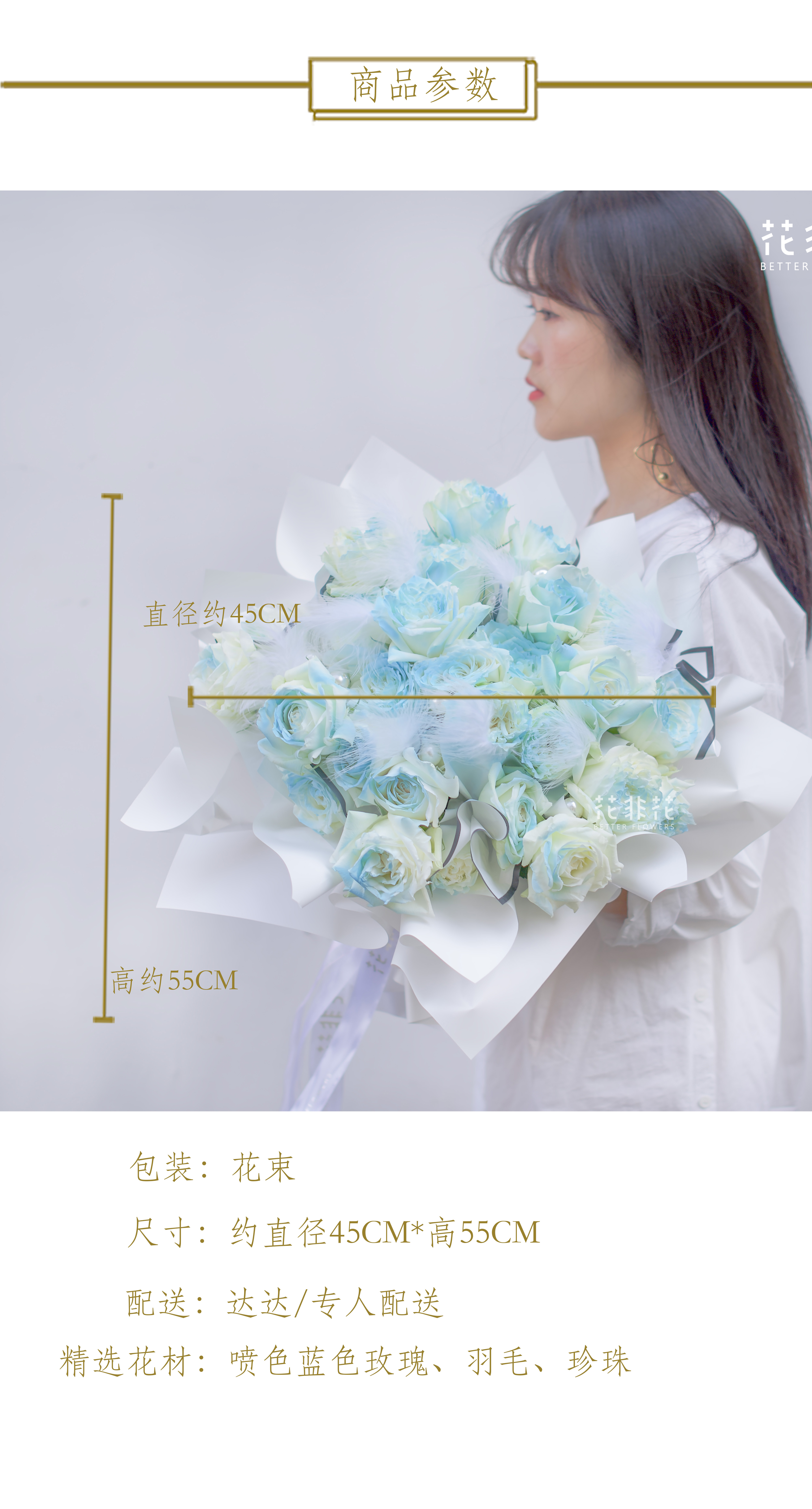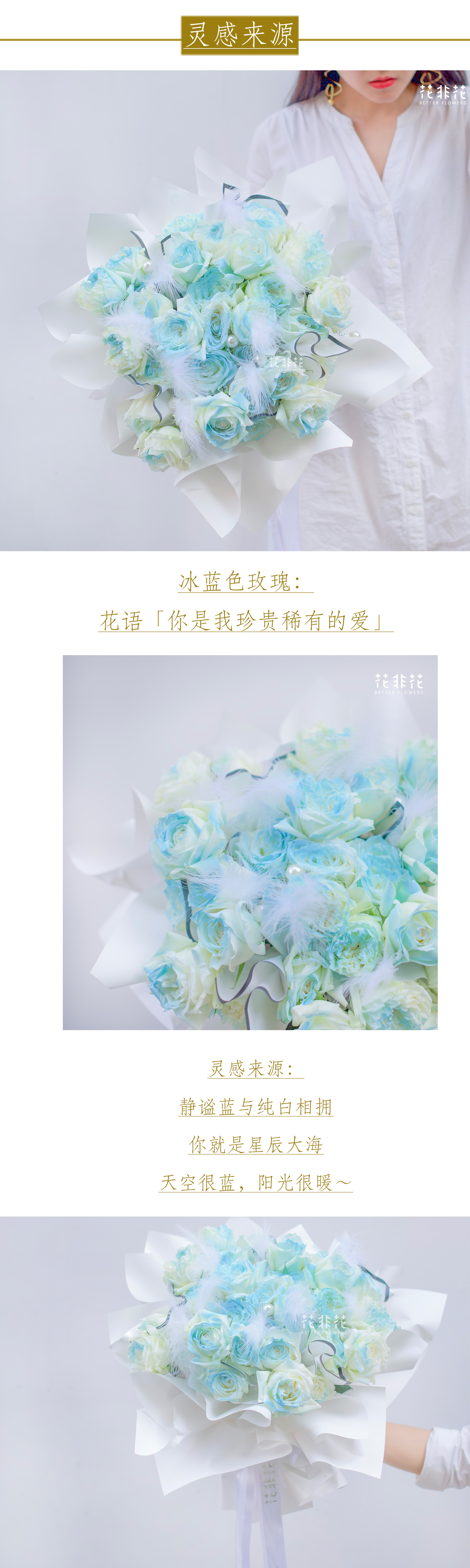 「星辰大海」-33朵冰蓝色玫瑰情人节花束