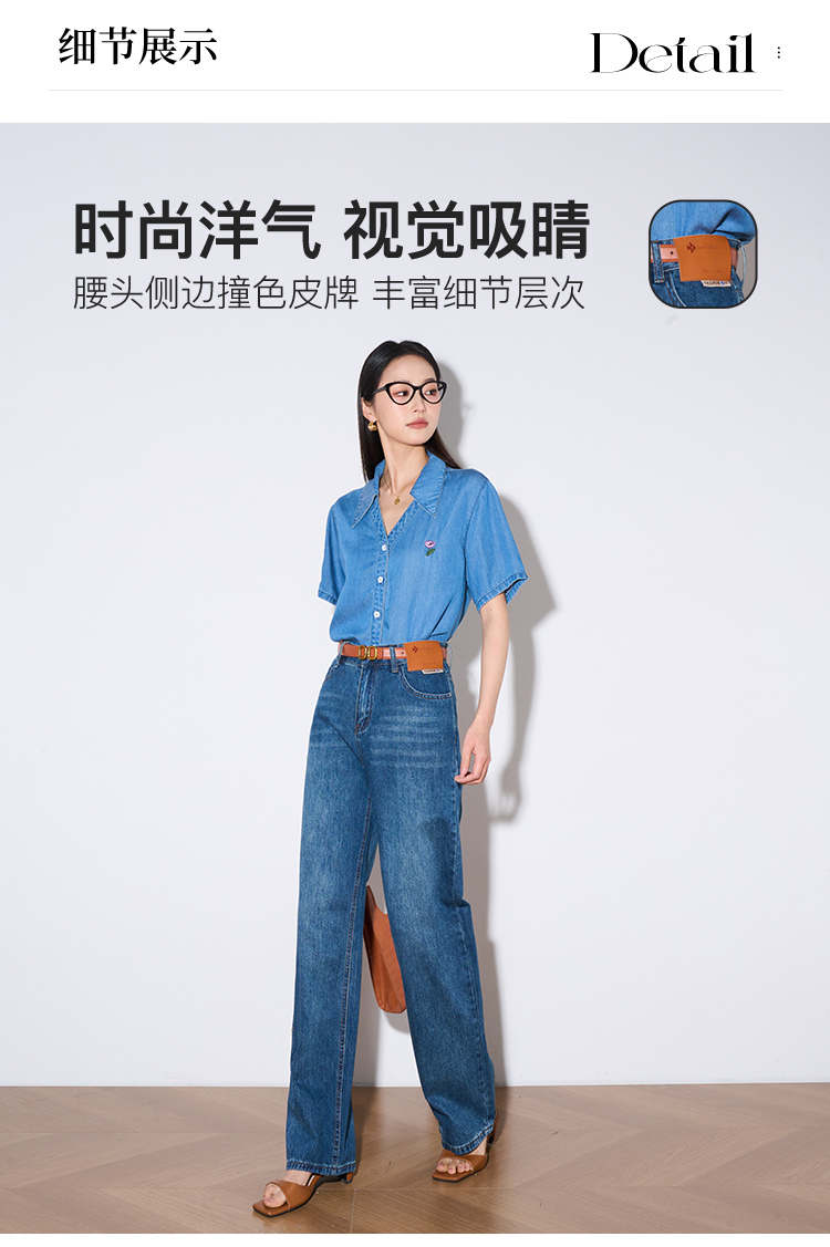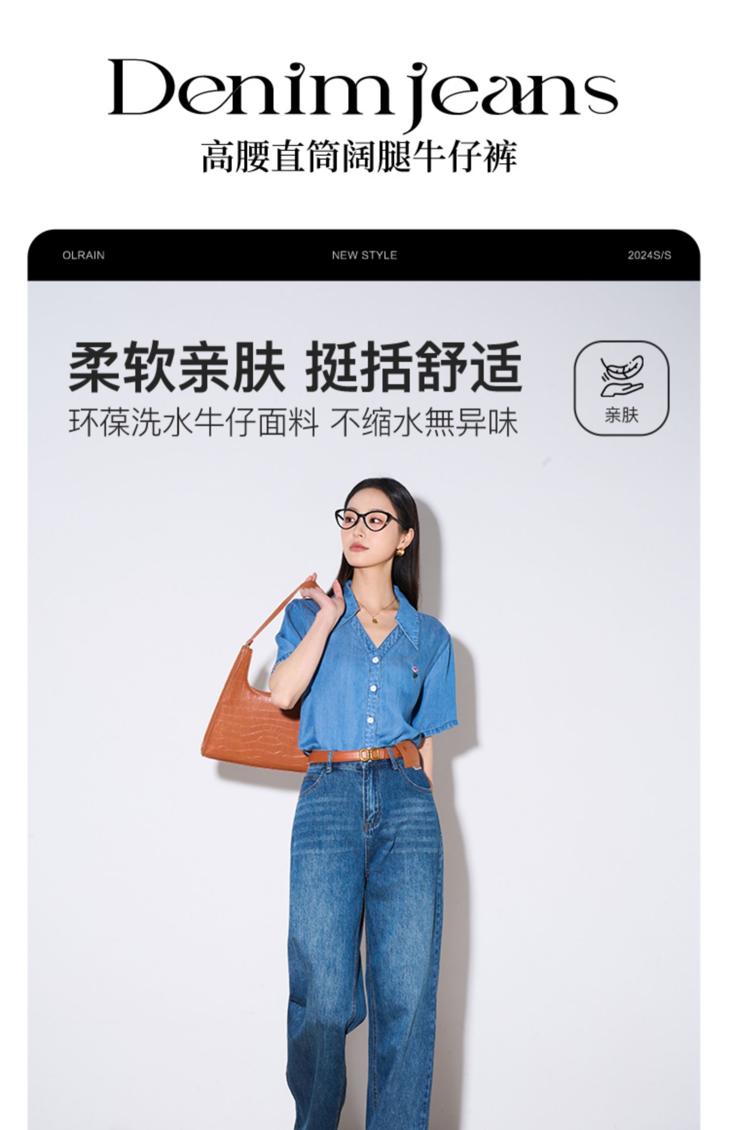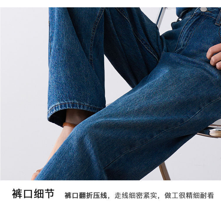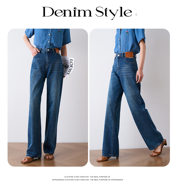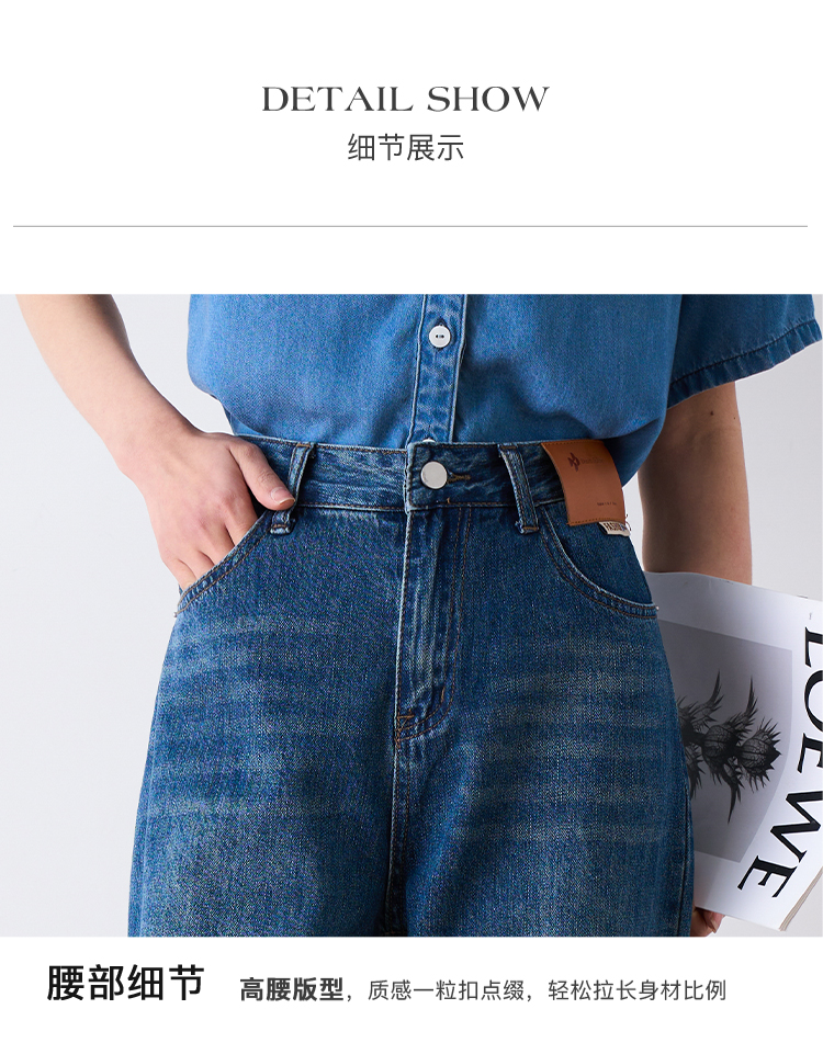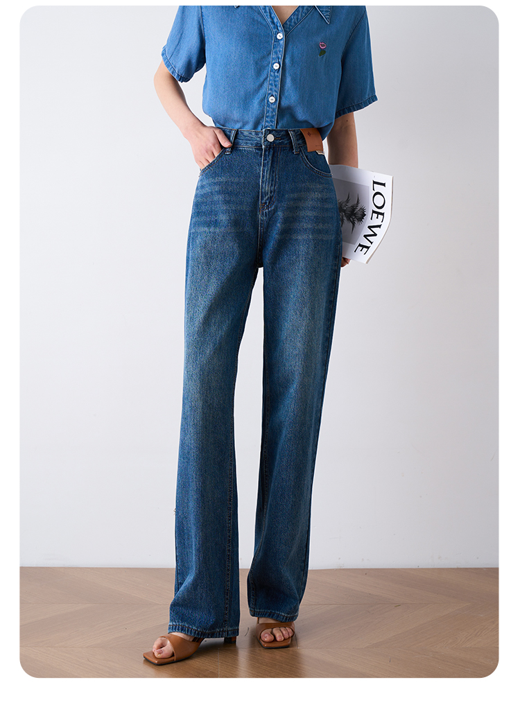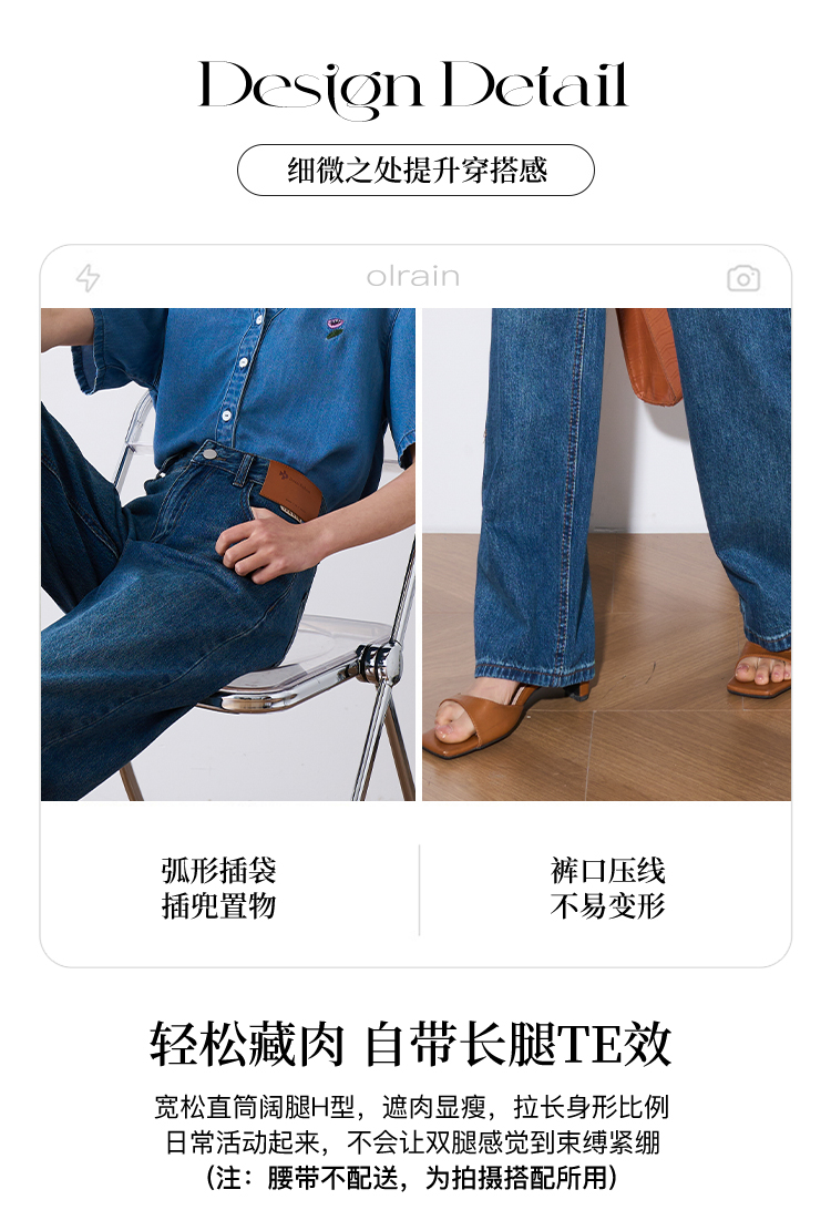 OLrain欧芮儿怀旧蓝牛仔裤女夏季2024年新款高腰直筒宽松阔腿裤