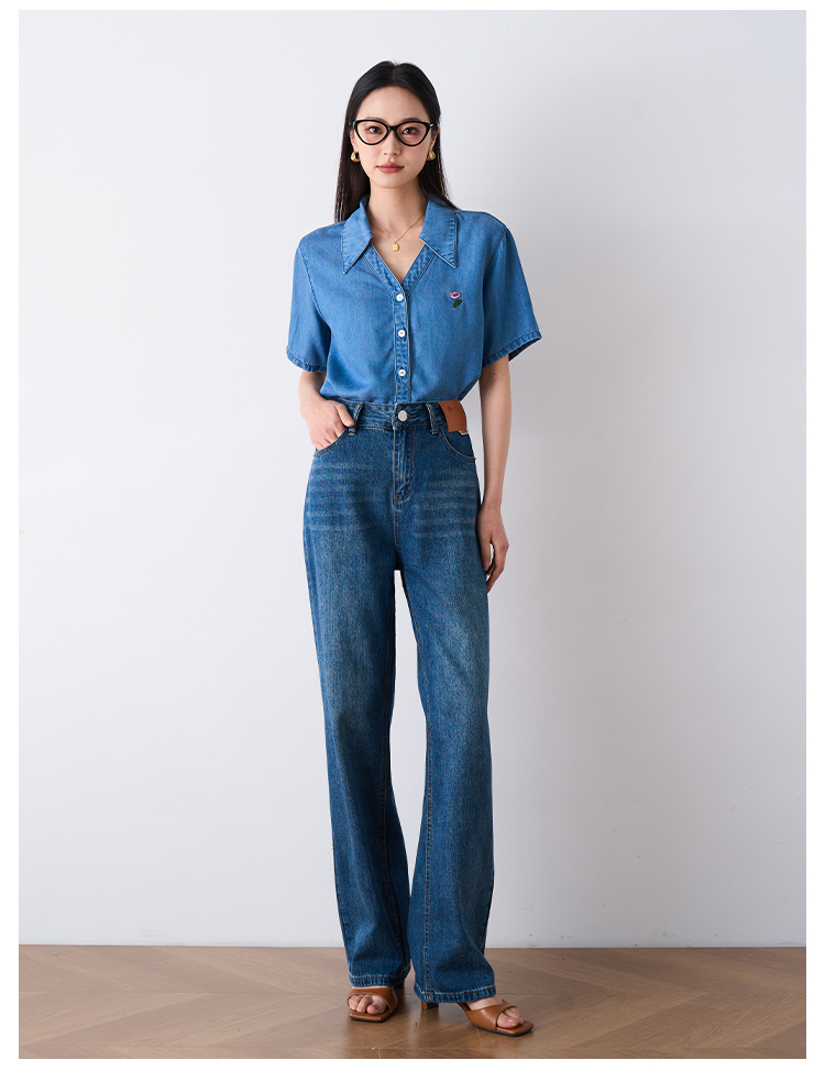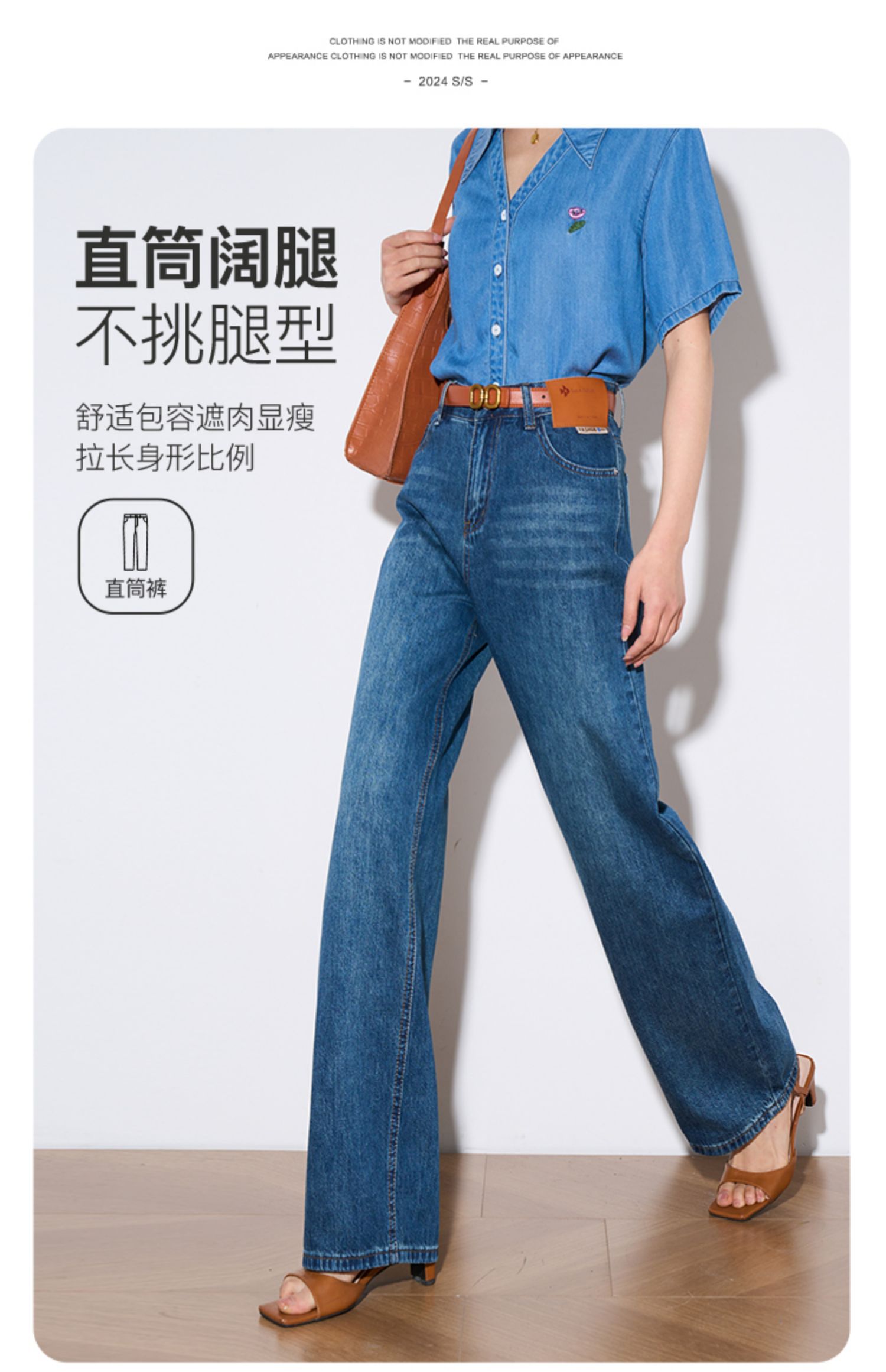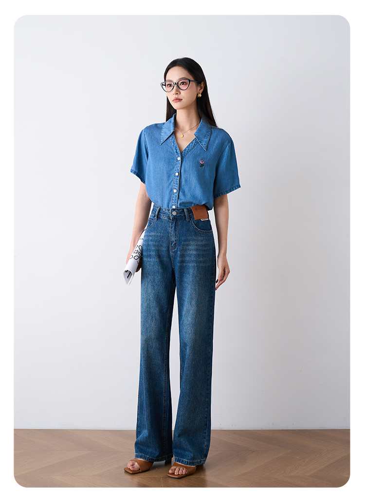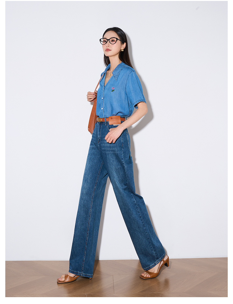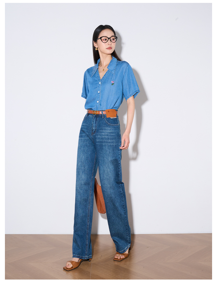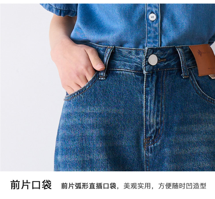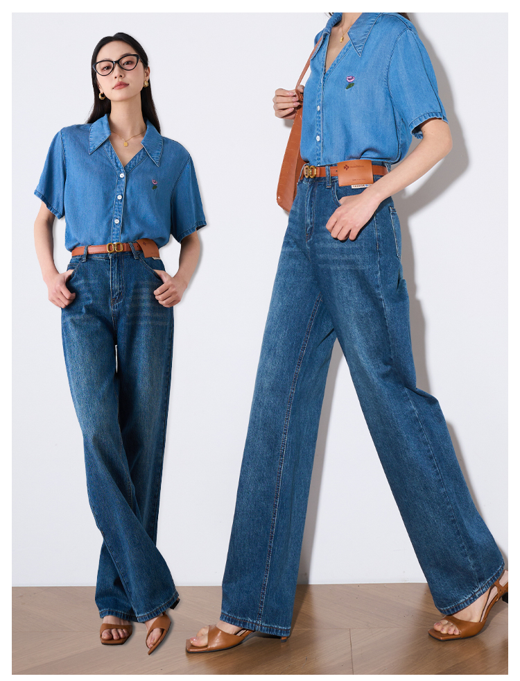OLrain欧芮儿怀旧蓝牛仔裤女夏季2024年新款高腰直筒宽松阔腿裤