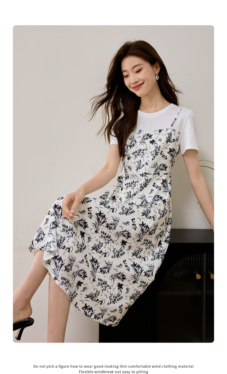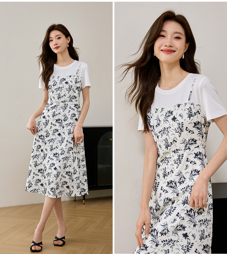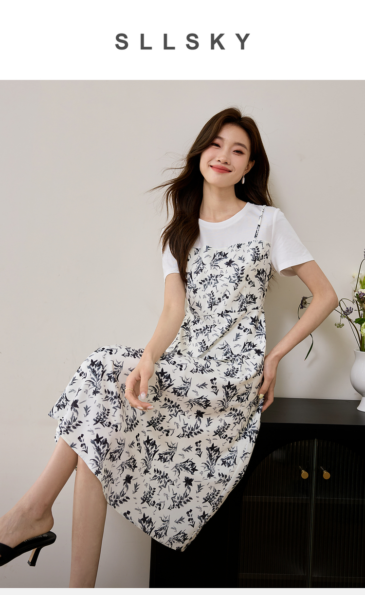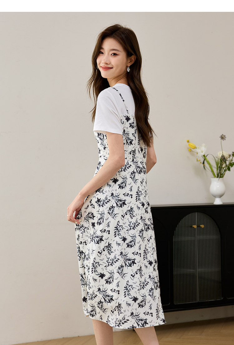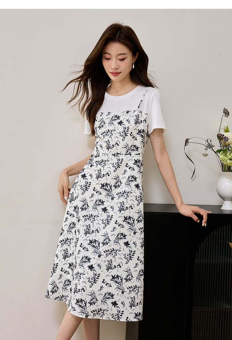【专属特价】熙世界休闲假两件碎花连衣裙夏2025法式气质收腰雪纺裙子设计感