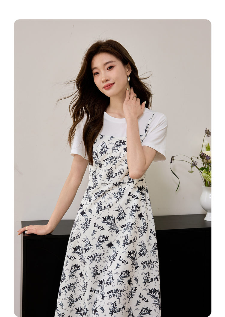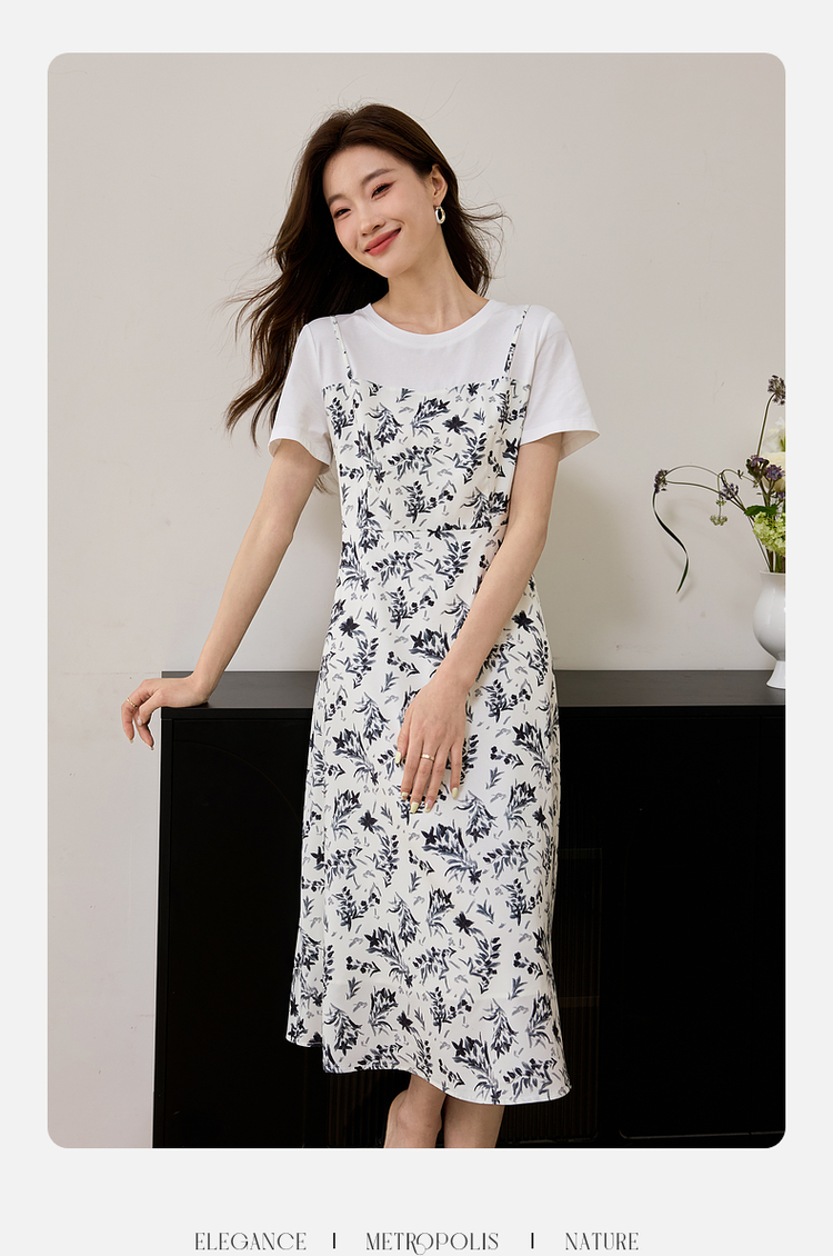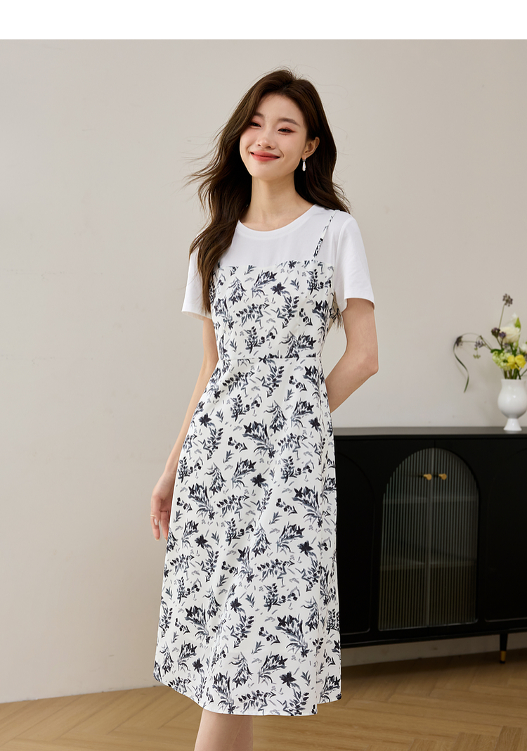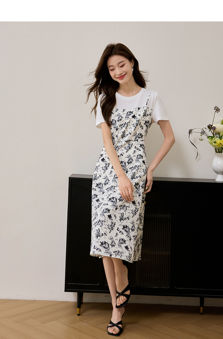 【专属特价】熙世界休闲假两件碎花连衣裙夏2025法式气质收腰雪纺裙子设计感