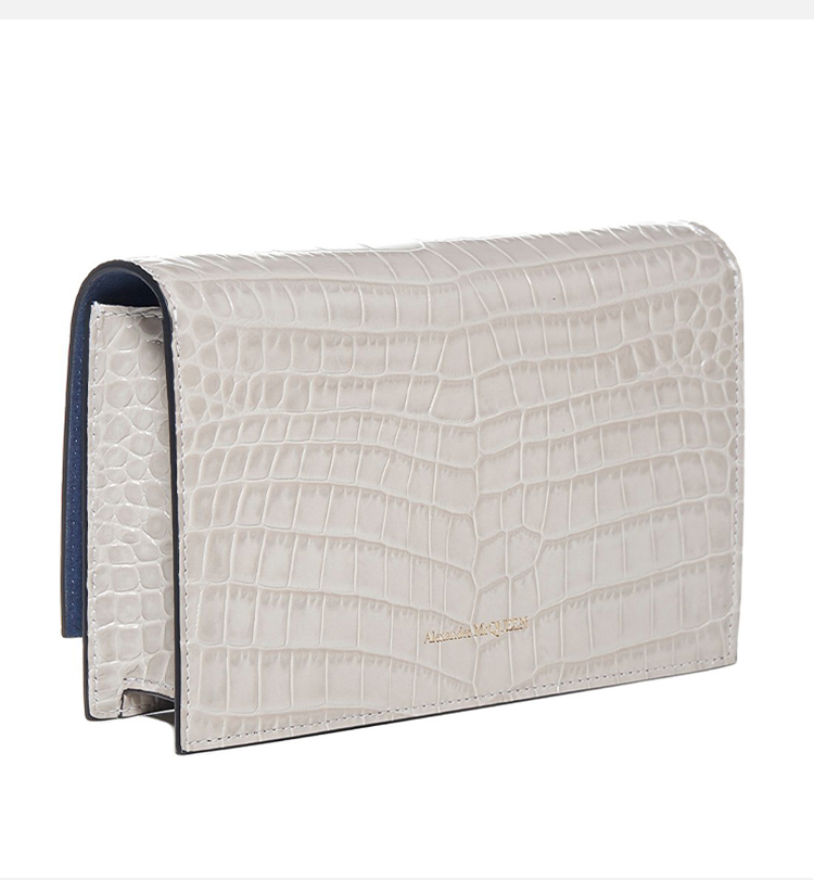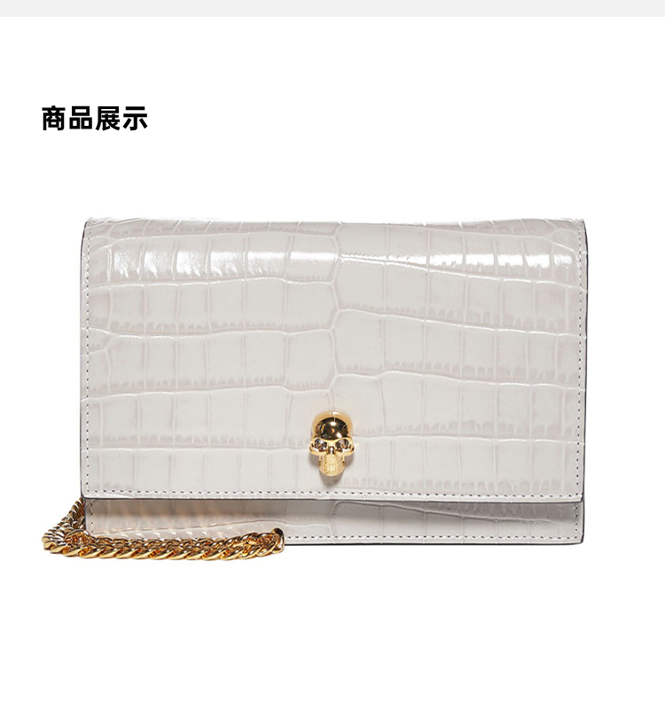 ALEXANDER MCQUEEN 亚历山大.麦昆 女士皮革鳄鱼压纹小号斜挎单肩骷髅包 浅灰 613088 1HB0G 1013