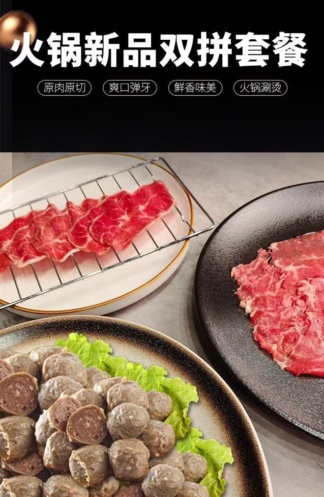 火锅新品双拼套餐【1.3-2.6斤装】(板腱&上脑双拼火锅片2盒/4盒、牛丸1包/2包)