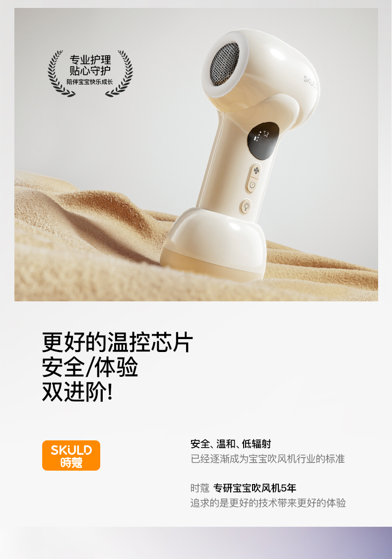【双旦活动】SKULD时蔻新款儿童吹风机无线吹红屁屁宝宝专用电吹风柔风低噪D2/D2plus