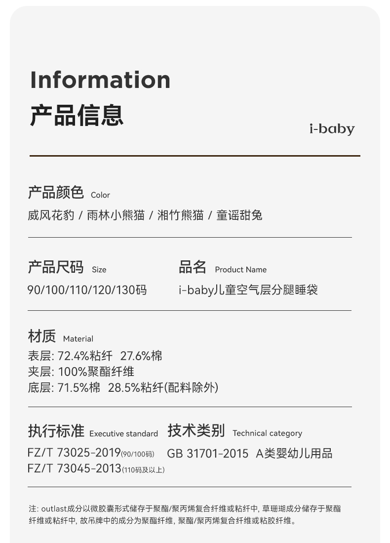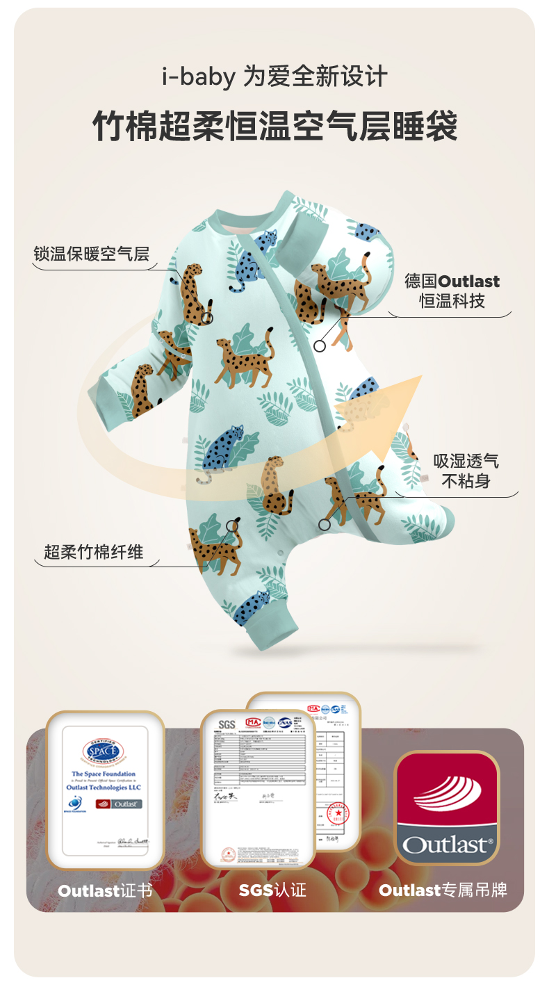 【qhxj】i-baby恒温分腿空气层睡袋婴儿防踢儿童新生儿宝宝春秋款睡衣