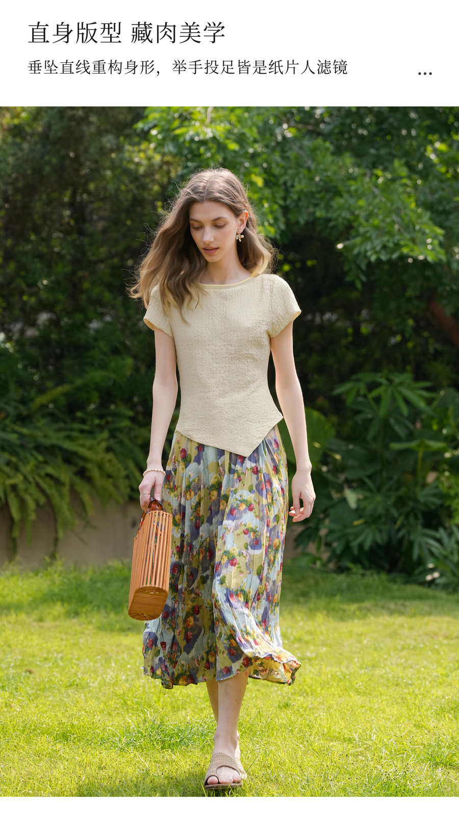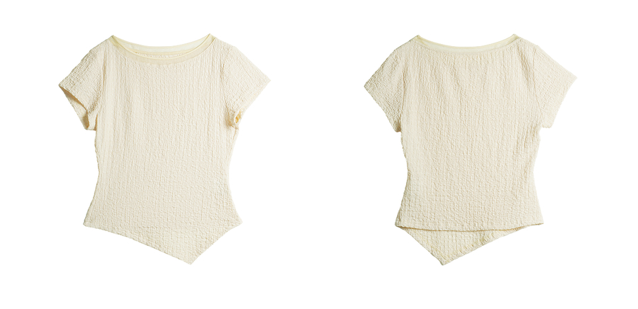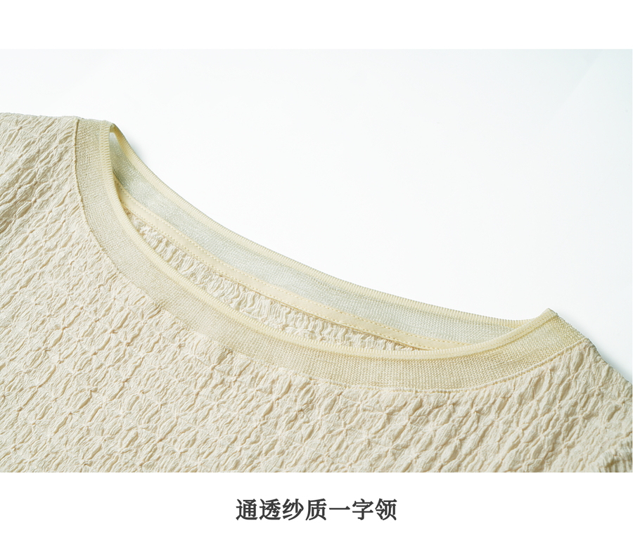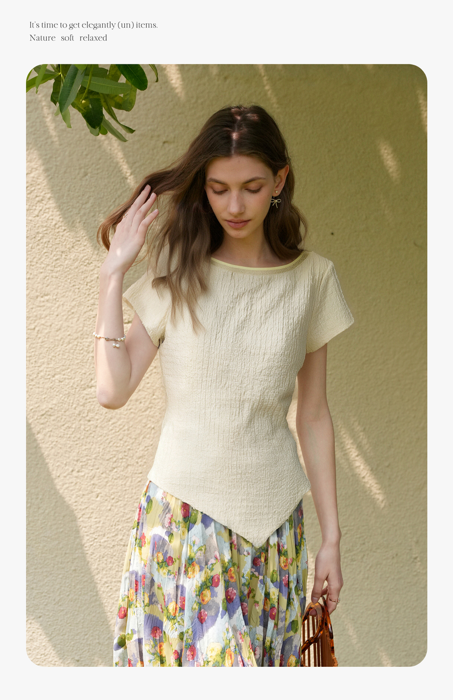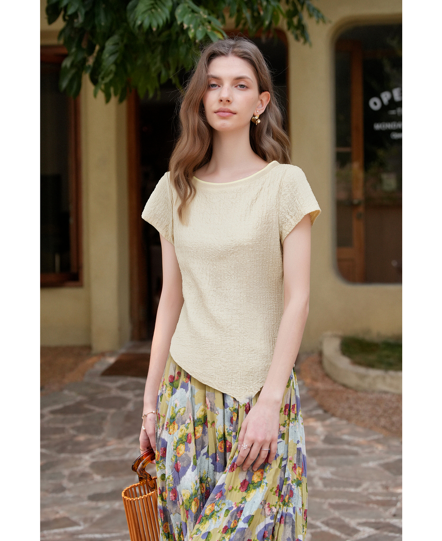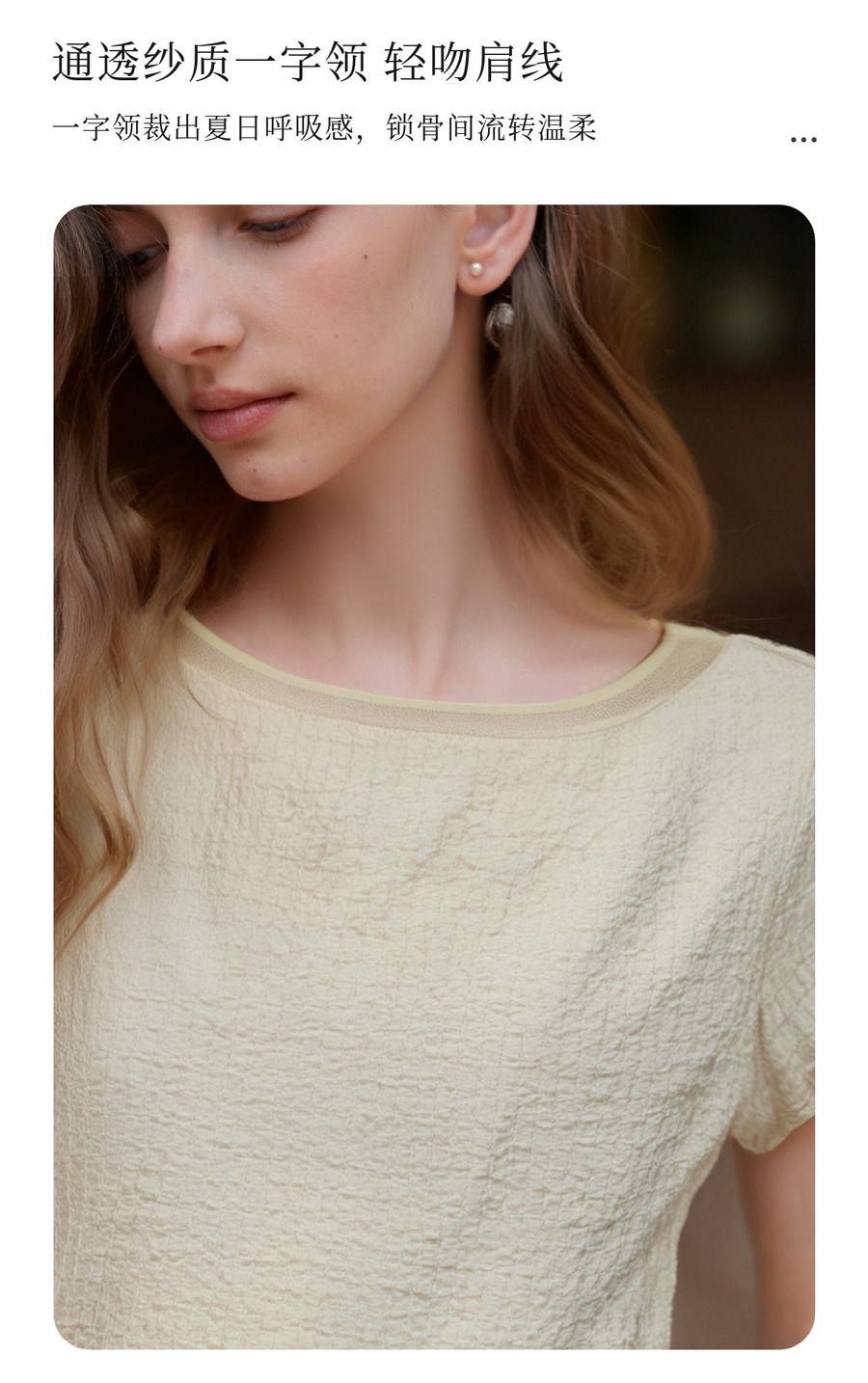 OLrain欧芮儿一字领法式肌理感T恤女夏季2025新款不规则短袖上衣