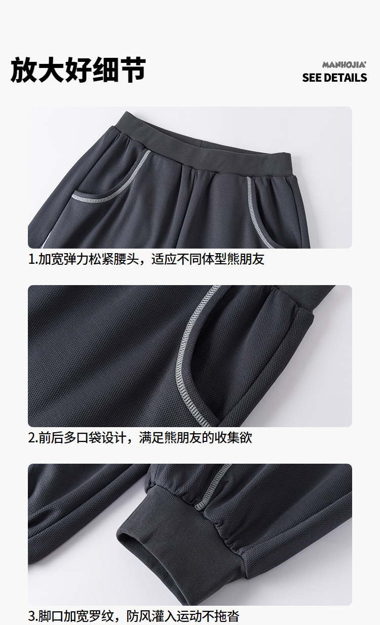 【熊朋友】漫画家25春升级抗菌速干凉感鸟眼布校园运动灯笼裤