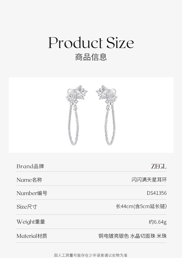 ZEGL设计师满天星系列锆石耳环女小众设计感高级耳钉甜美风耳饰品