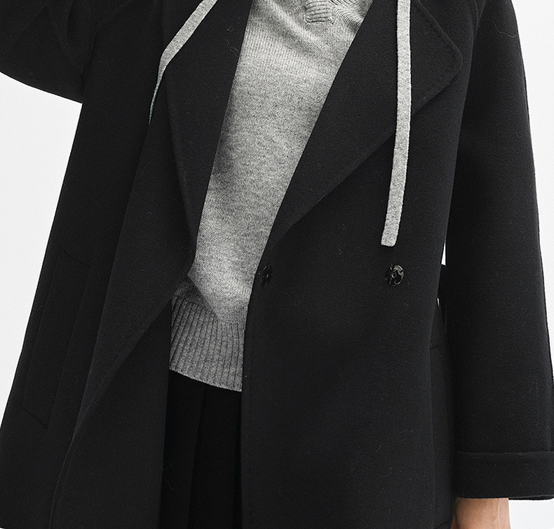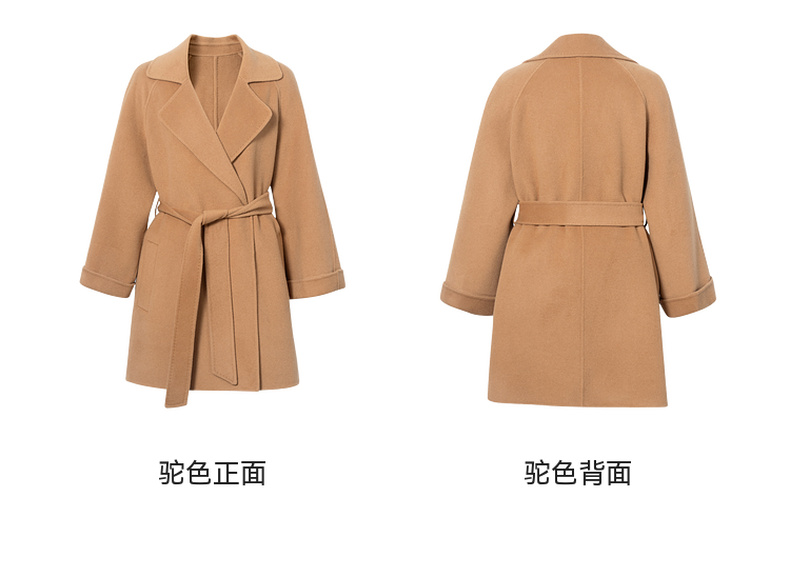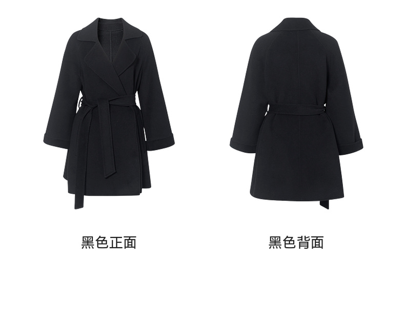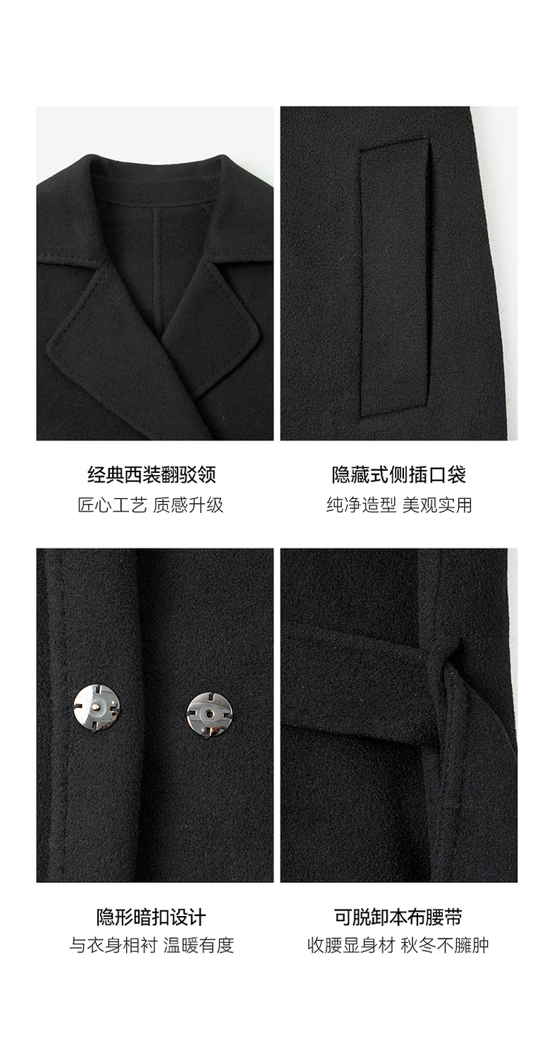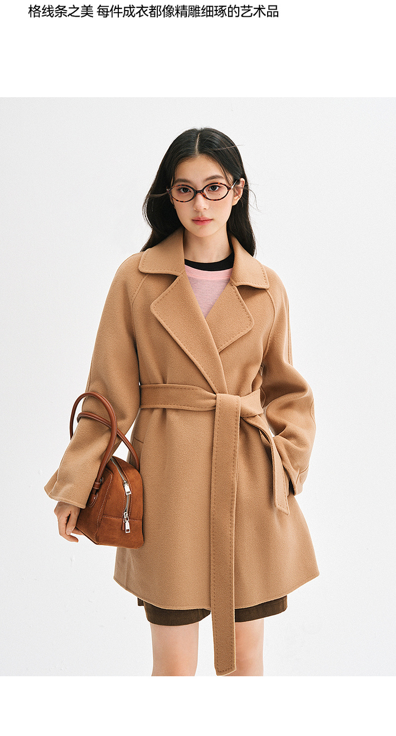 【严选】诗凡黎绵羊毛双面呢2024冬新款小个子高级中长系带毛呢外套大衣女SF7170171D