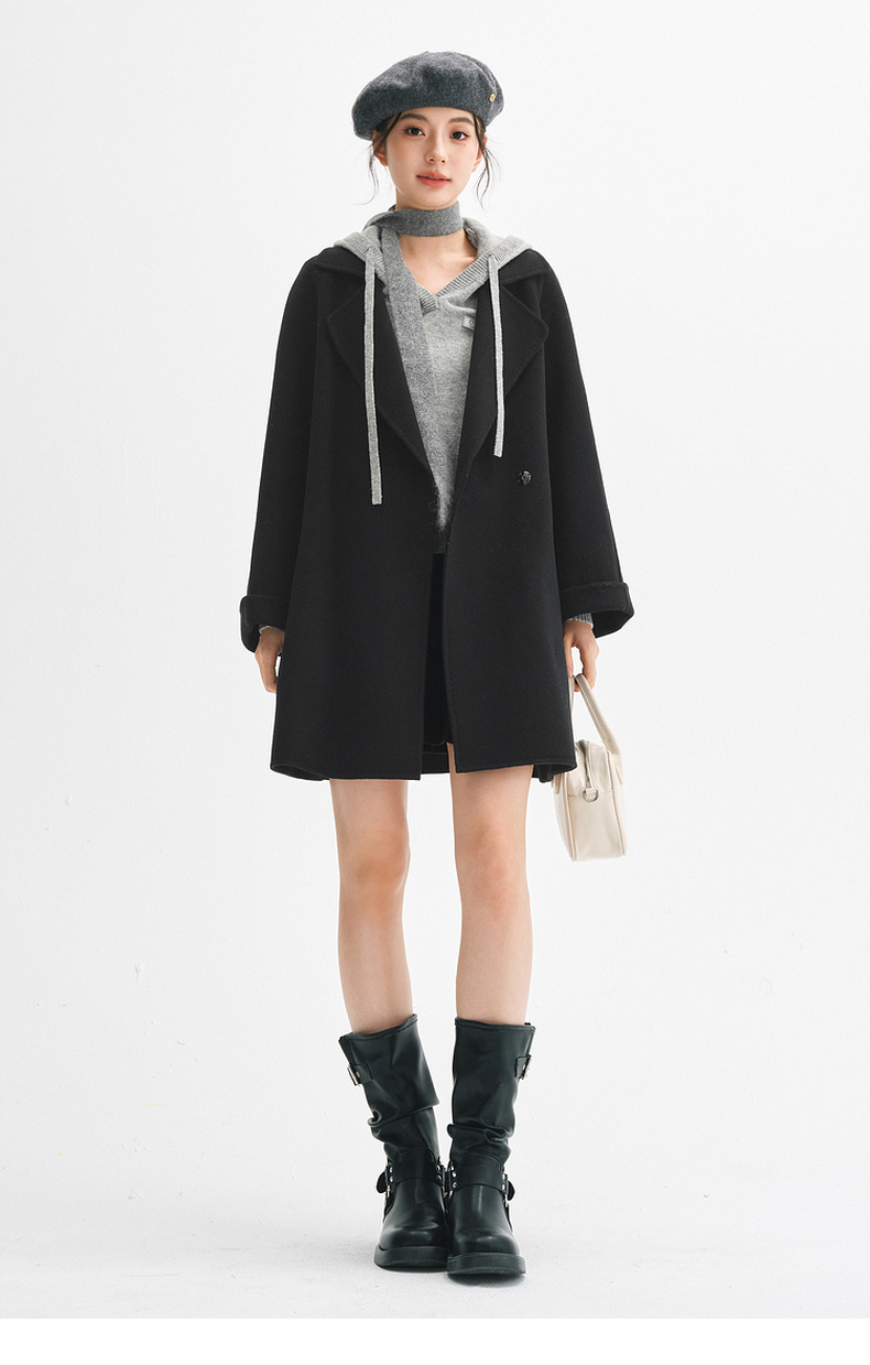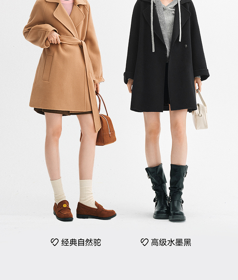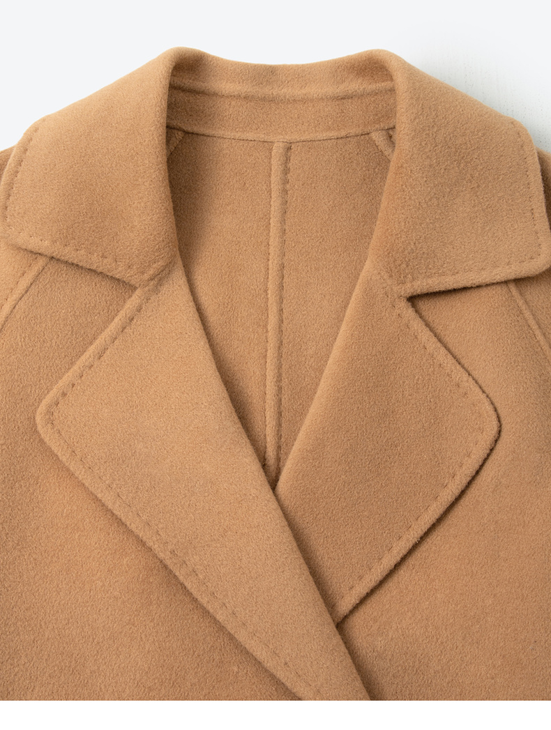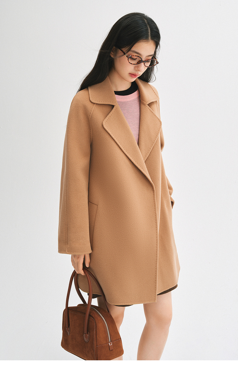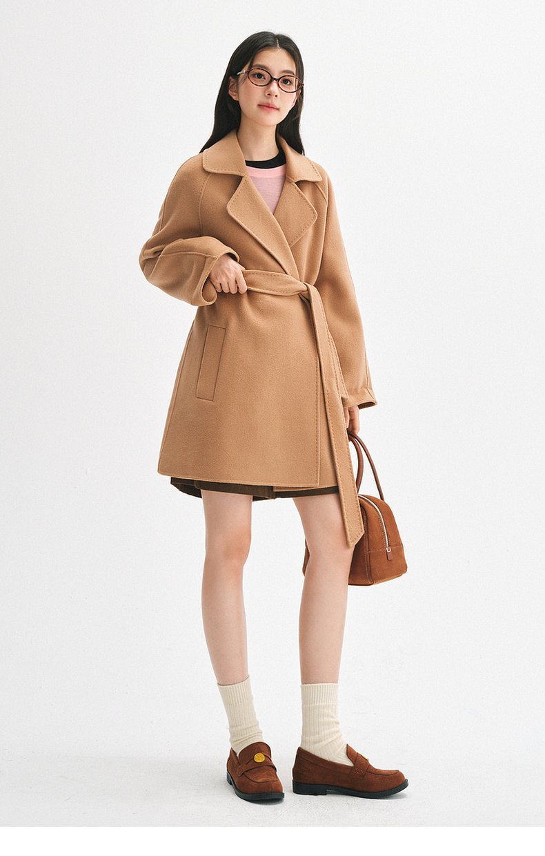 【严选】诗凡黎绵羊毛双面呢2024冬新款小个子高级中长系带毛呢外套大衣女SF7170171D