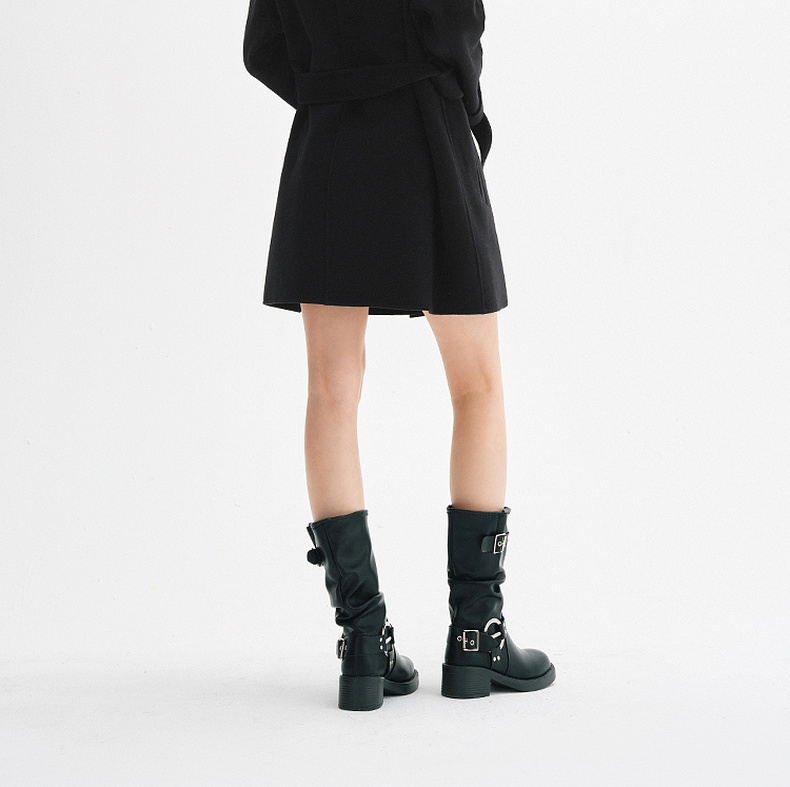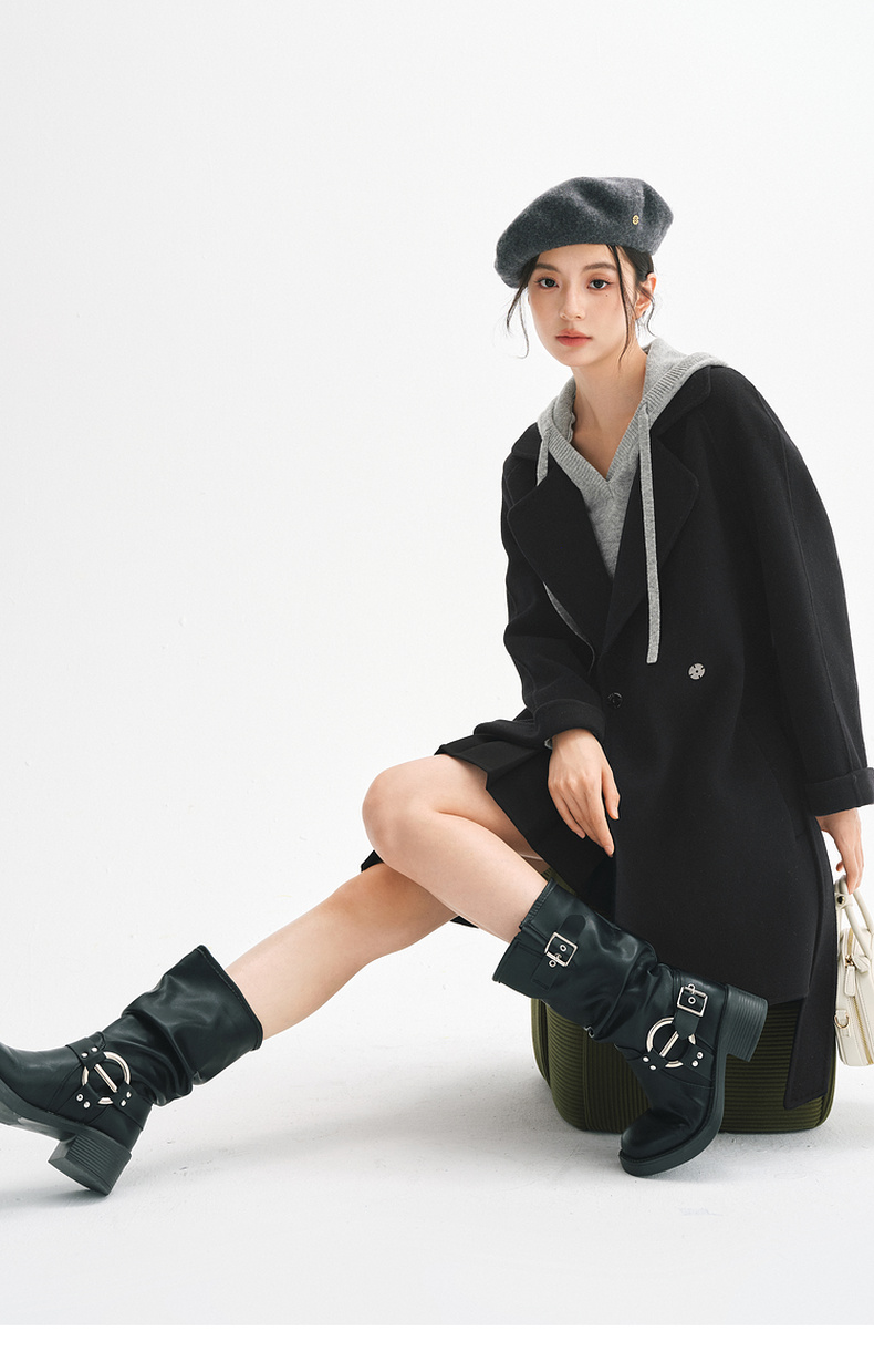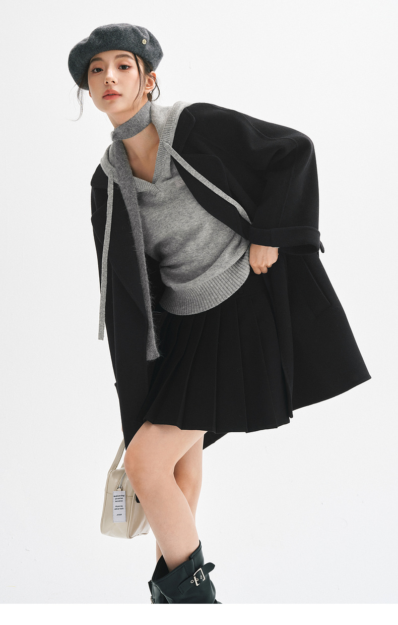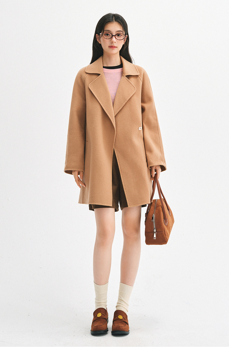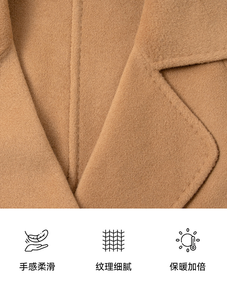 【严选】诗凡黎绵羊毛双面呢2024冬新款小个子高级中长系带毛呢外套大衣女SF7170171D