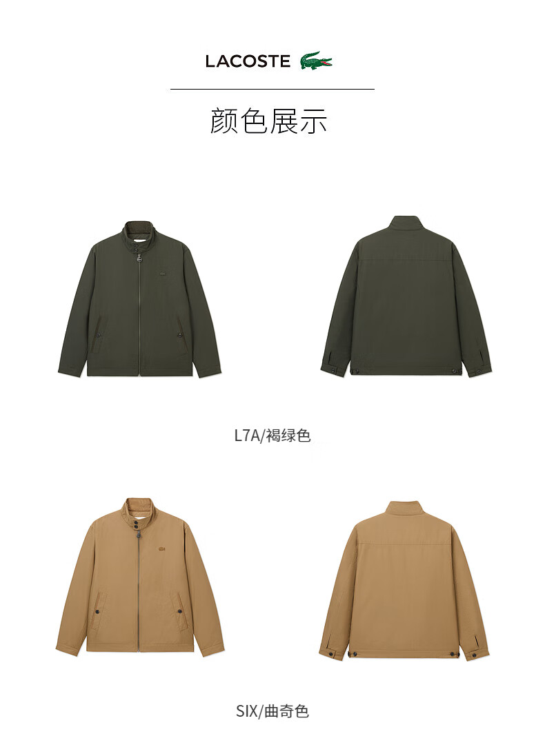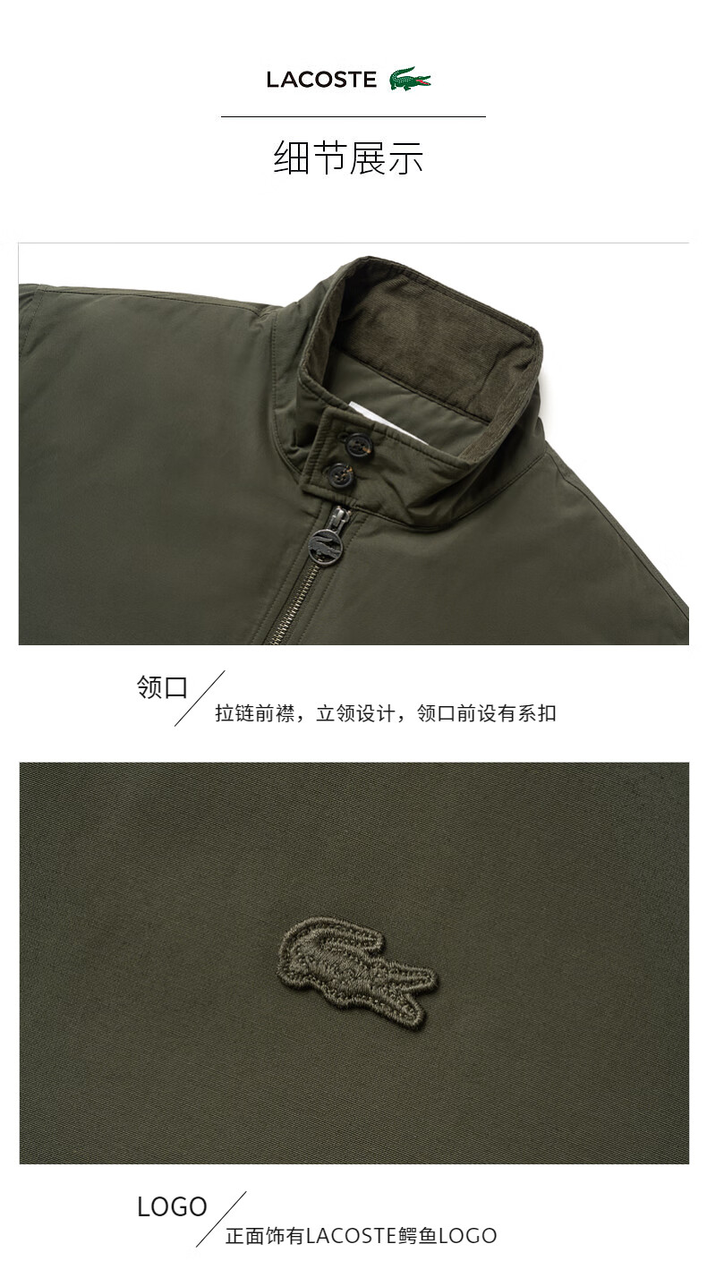 Lacoste法国鳄鱼男装新款时尚百搭休闲拉链立领棉服外套BH0684-98