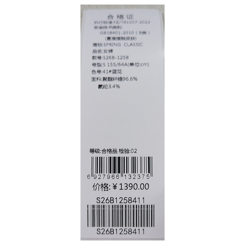 西贝伦长裤S26B1258